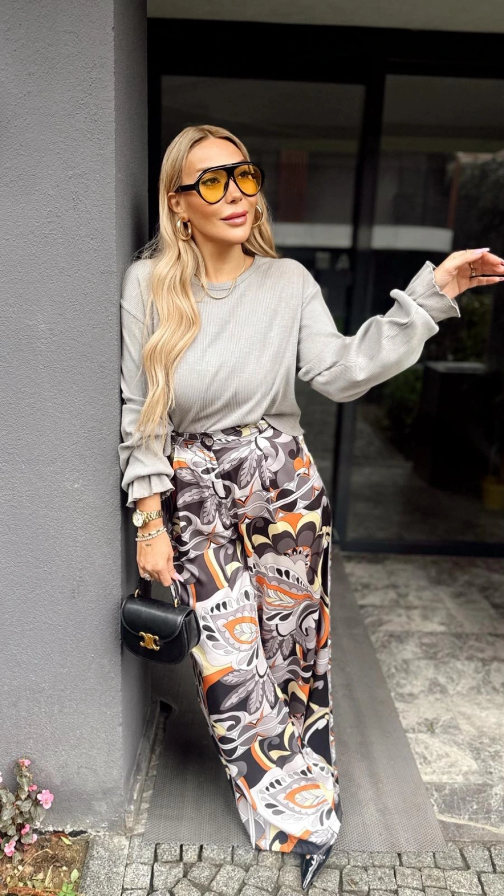 • BİSİKLET YAKA FİTİLLİ KUMAŞ GRİ YIKAMALI BİLEK DETAYLARI OLAN BLUZ