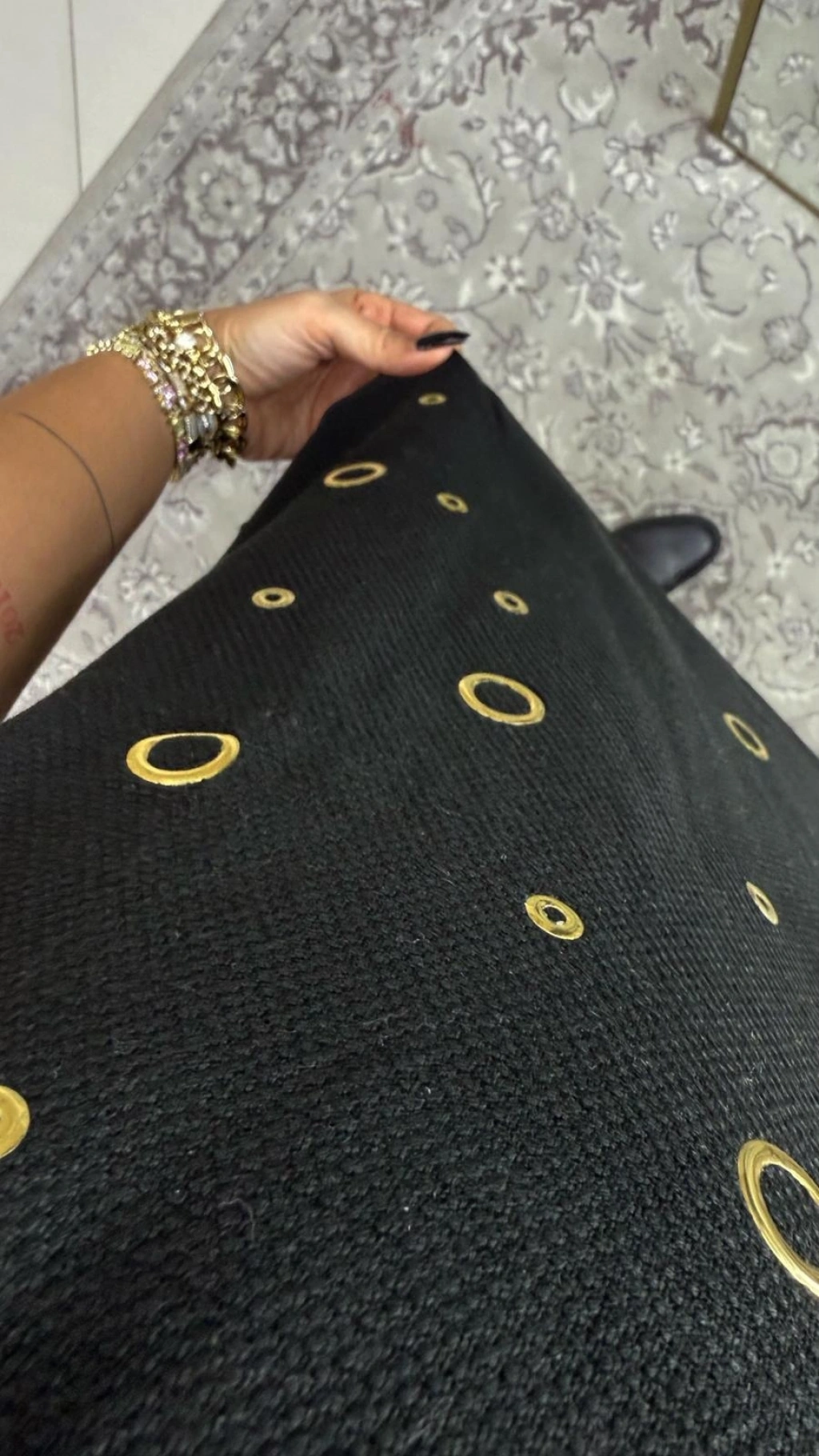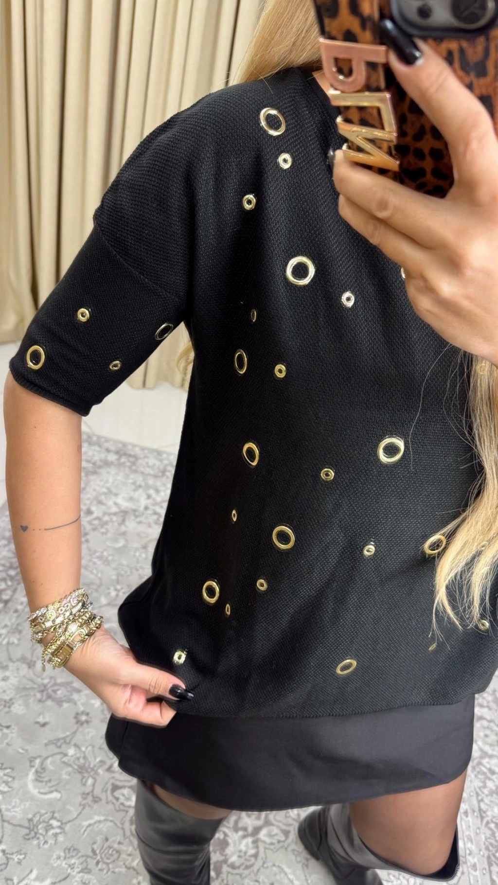 • SİYAH KUŞGÖZÜ MODEL STANDART BEDEN BLUZ RAHAT KALIPTIR SADECE KOL DETAYLARI HAFİF DARDIR