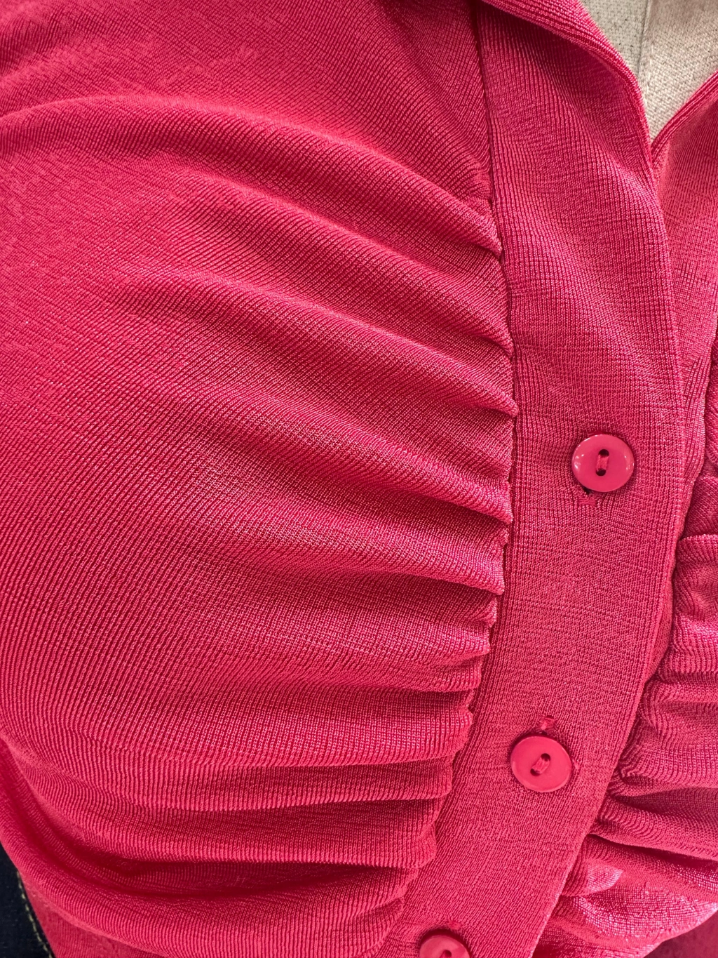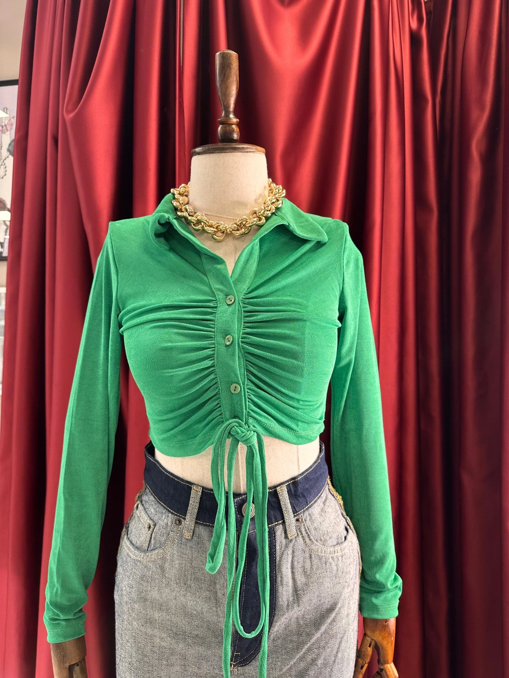 • DÜĞMELİ ÖNÜ BÜZGÜLÜ BAĞCIKLI BLUZ