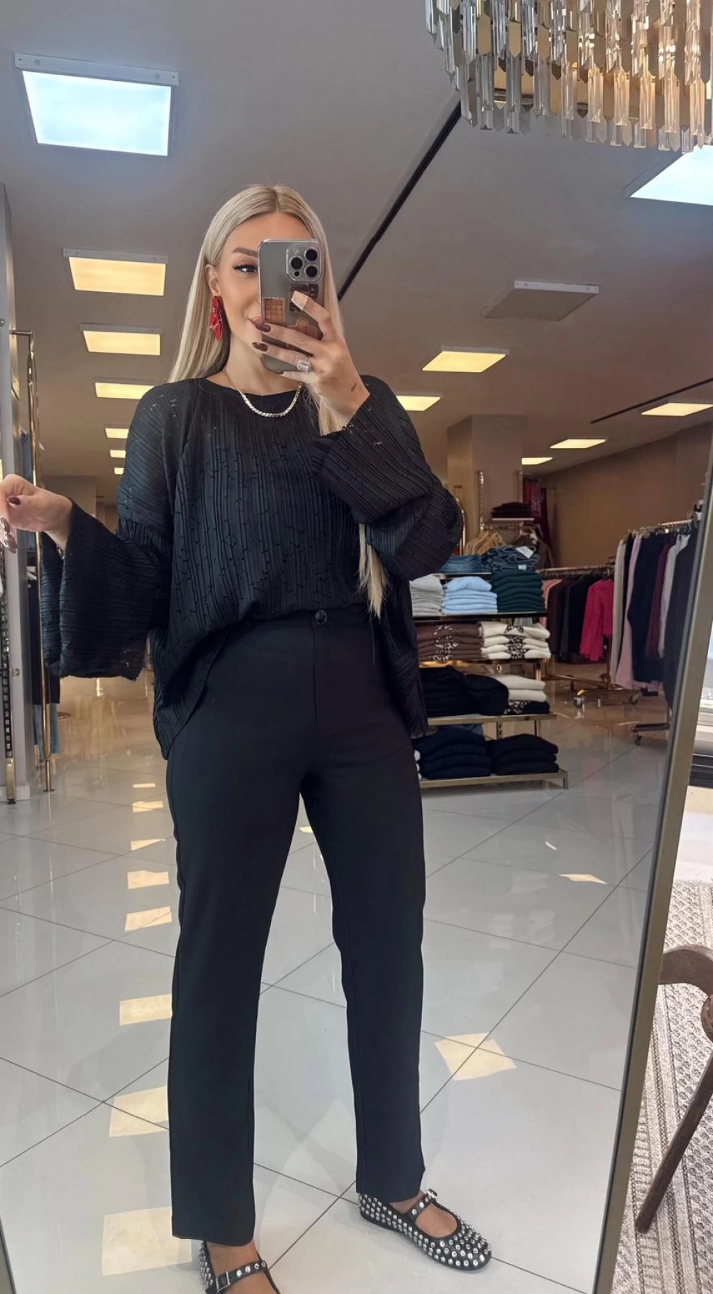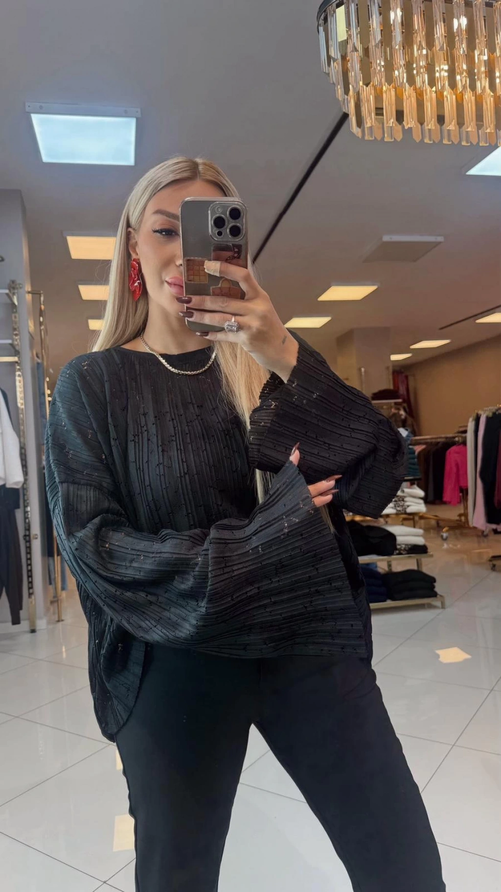 • SİYAH KOLLARI GENİŞ ÇOK ESNEK BİSİKLET YAKA BLUZ