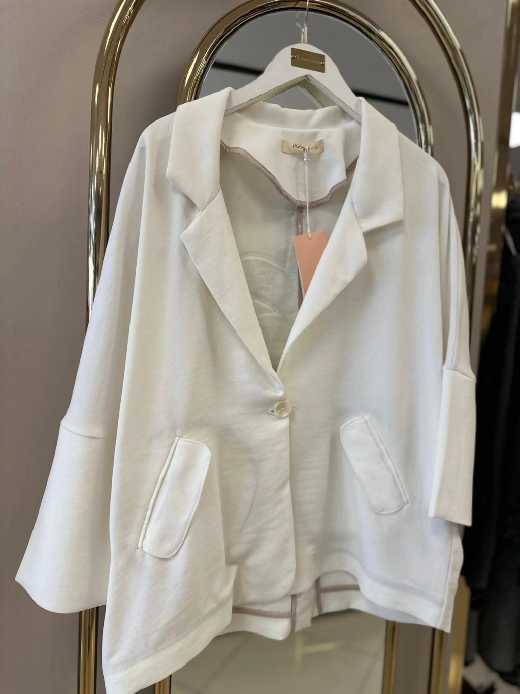 • GENİŞ KALIPTIR ÖNDEN DÜĞMELİ ARKASI İŞLEMELİ CEKET