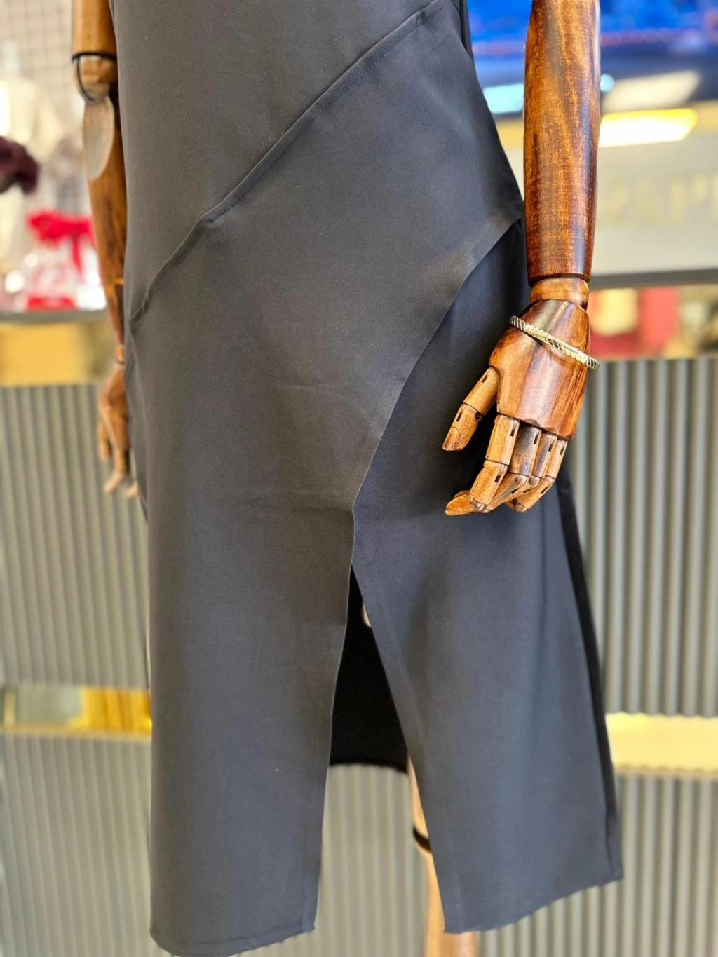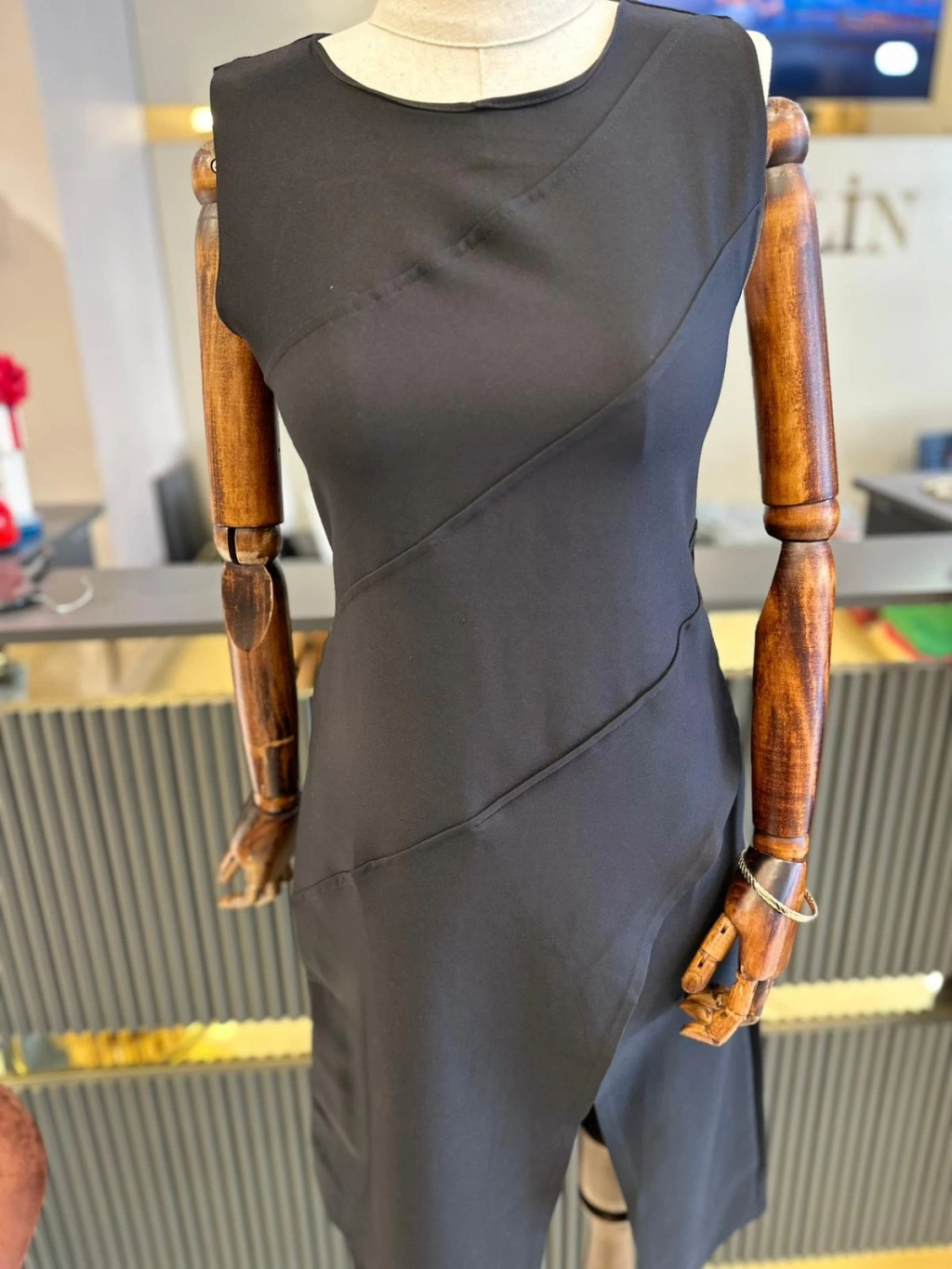 • ÖNDEN YIRTMAÇ DETAYLI SİYAH ELBİSE