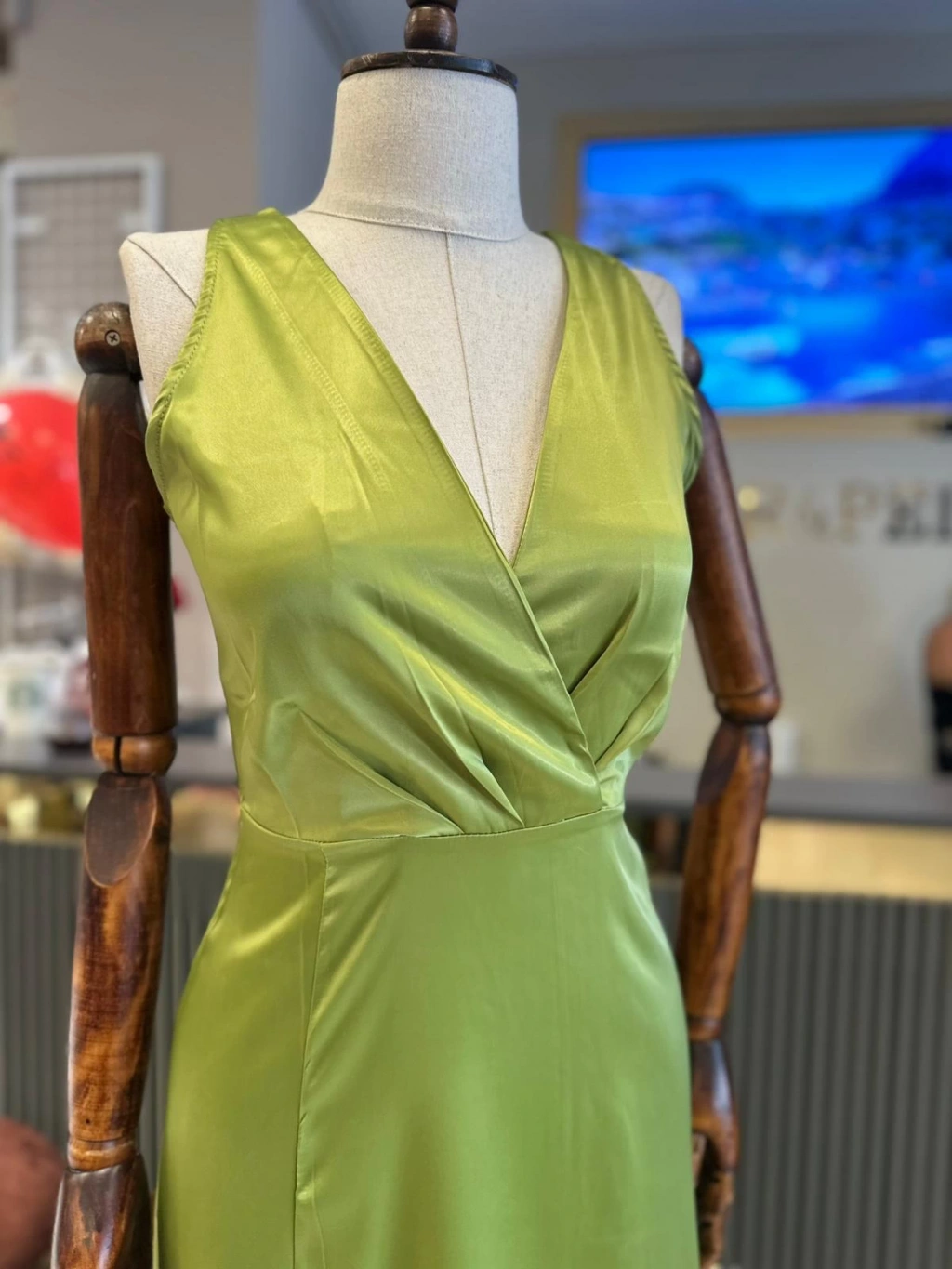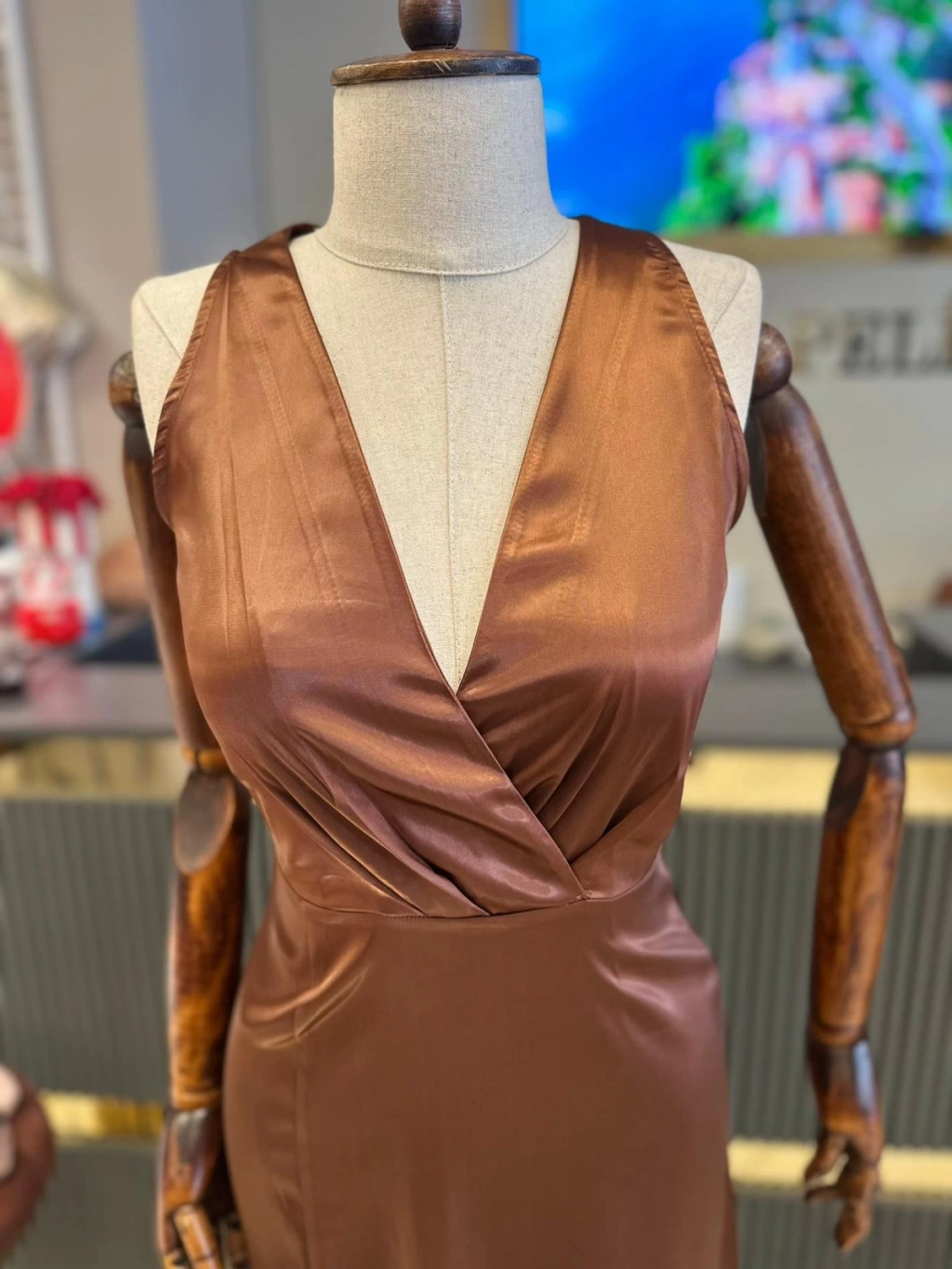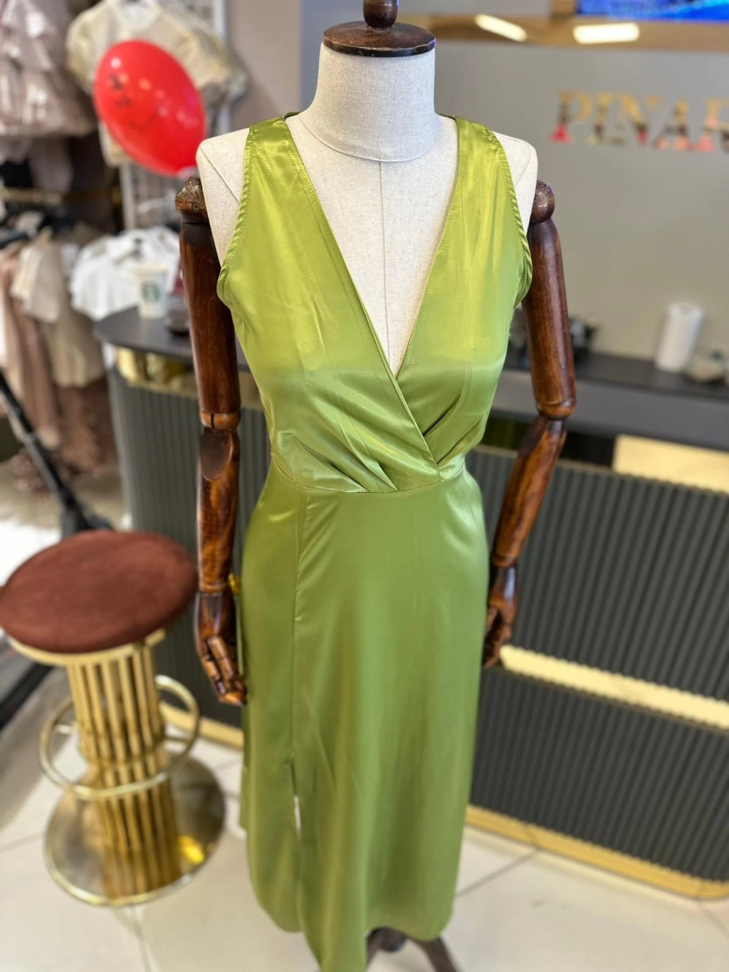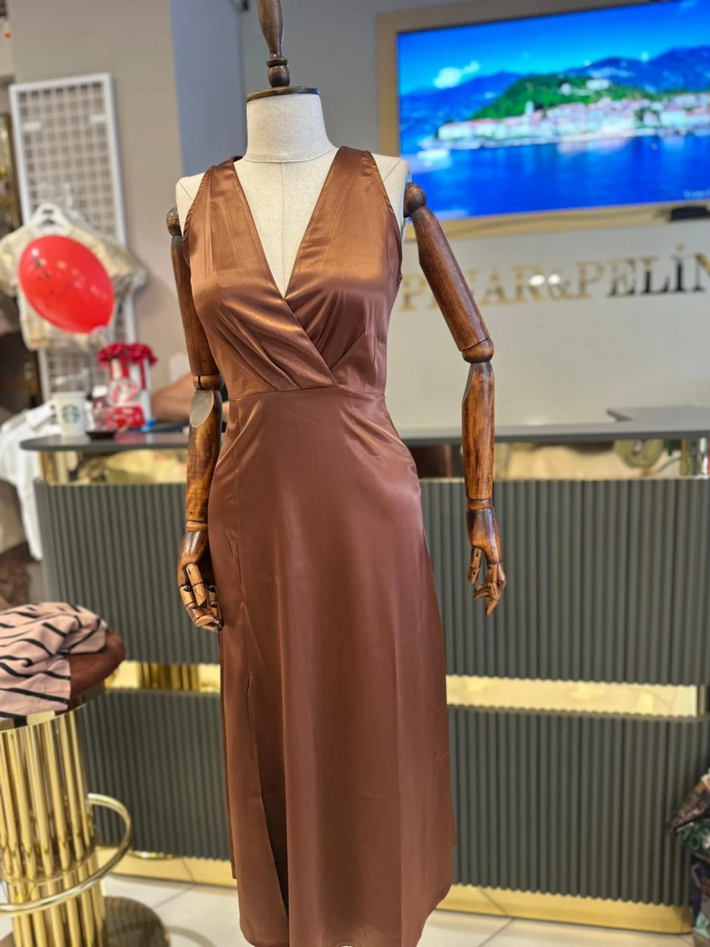 • SATEN ELBİSE YIRTMAÇ DETAYLI TAM KALIP GÖGÜS DEKOLTELİ GÖRSELDE SMALL BEDEN KULANILMIŞTIR