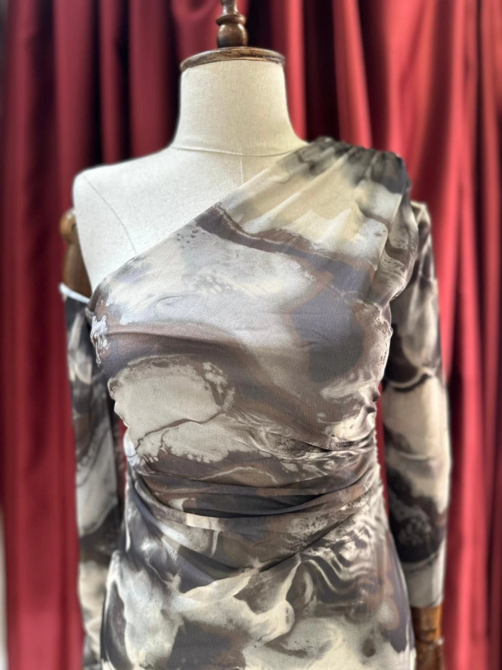 • TRANSPARAN DETAY TÜL KOLLU ASTARLI OMZU AÇIK MİDİ BOY ELBİSE