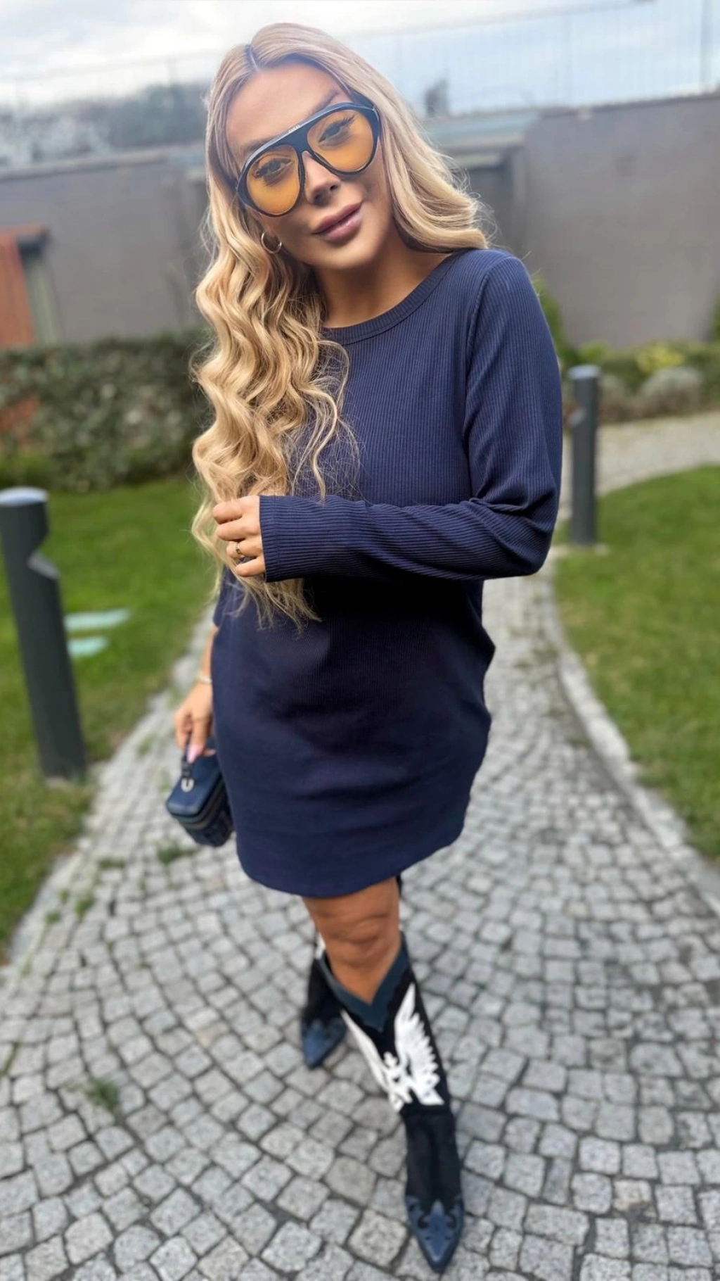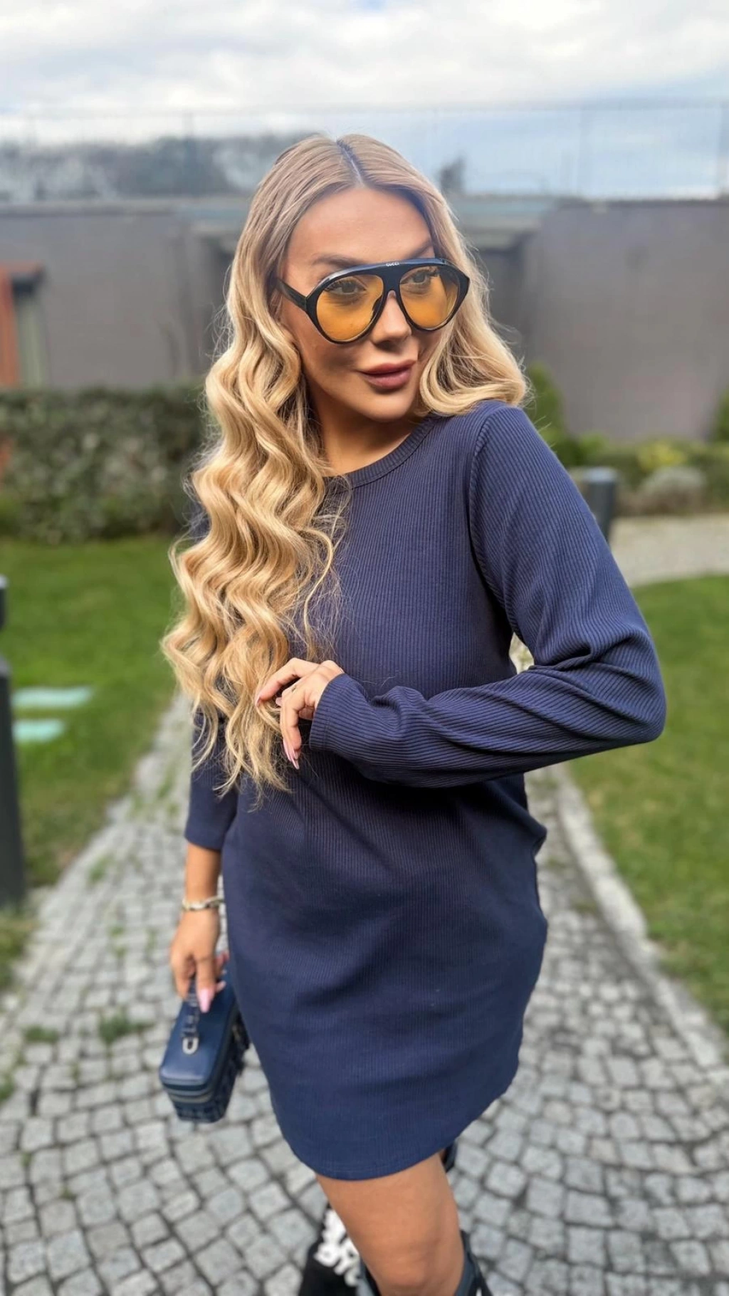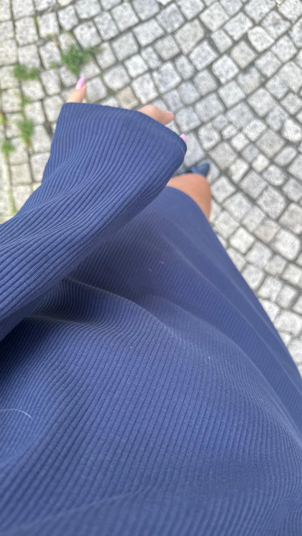 • LACİVERT FİTİLLİ KUMAŞ ÇOK ESNEK BİSİKLET YAKA BASİC ELBİSE İÇ GÖSTERMEZ