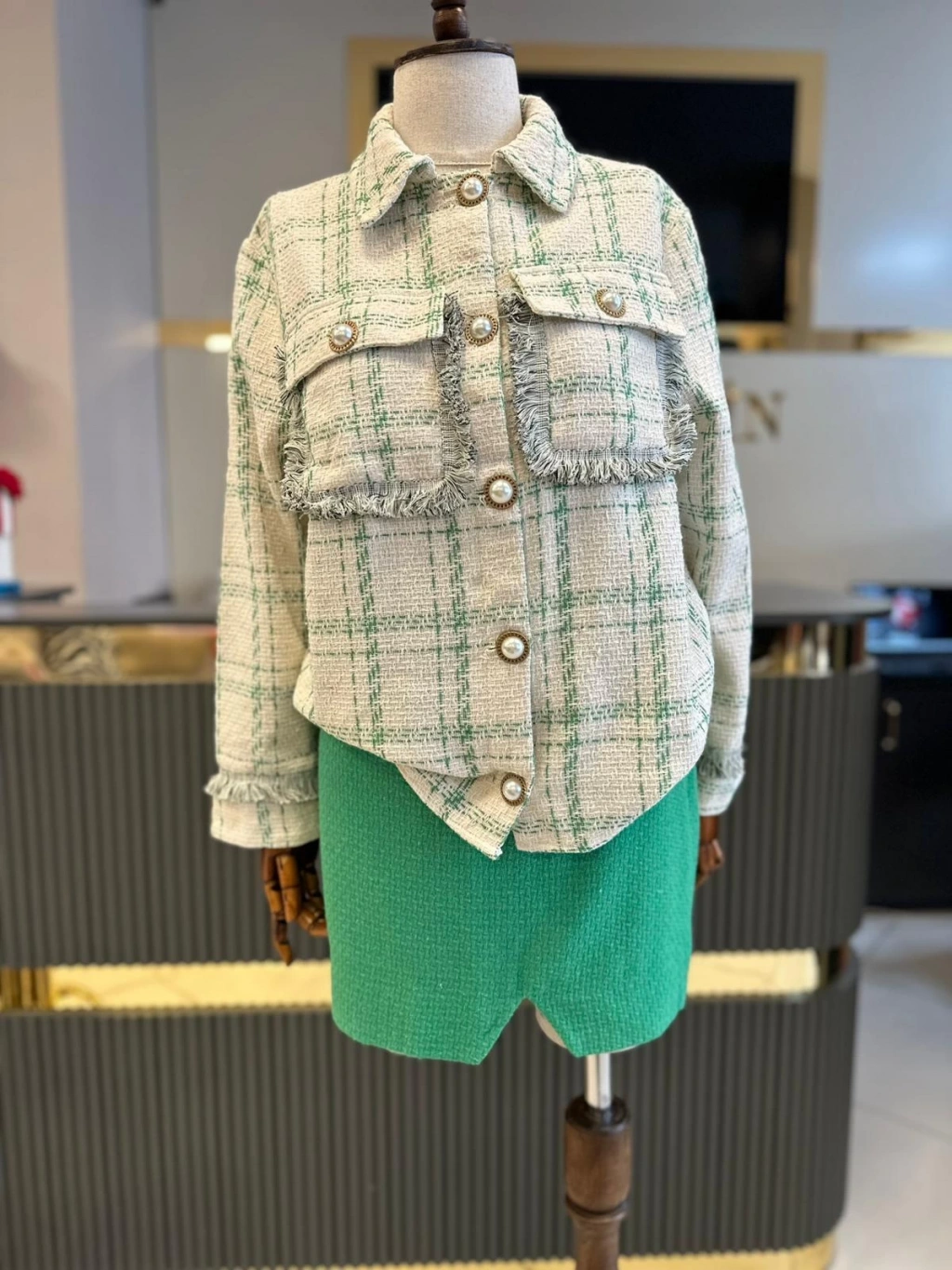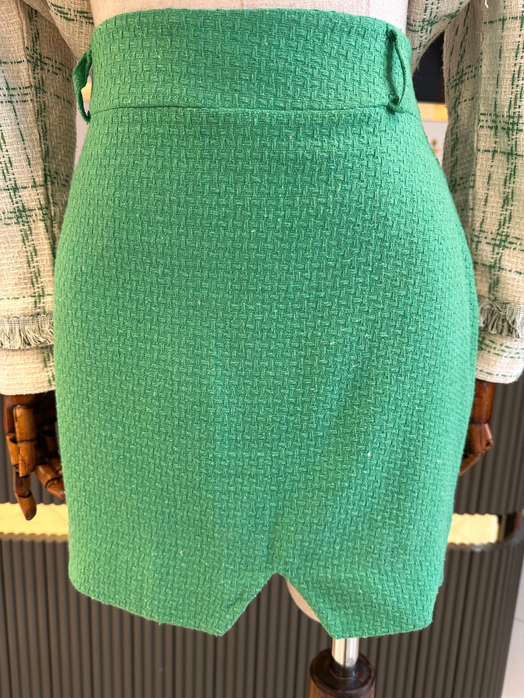 • ÖNDEN YIRTMAÇ TÜVİT KUMAŞ YEŞİL MİNİ ETEK GÖRSELDE SMALL BEDEN KULLANILMIŞTIR