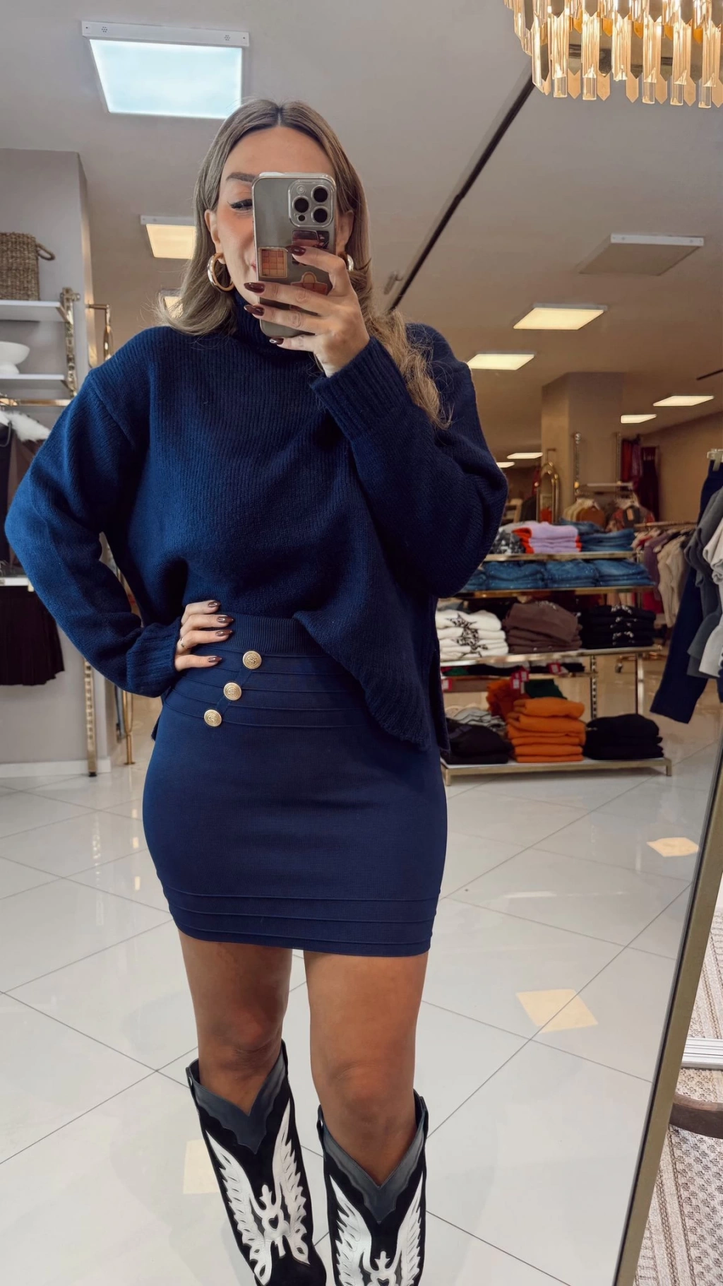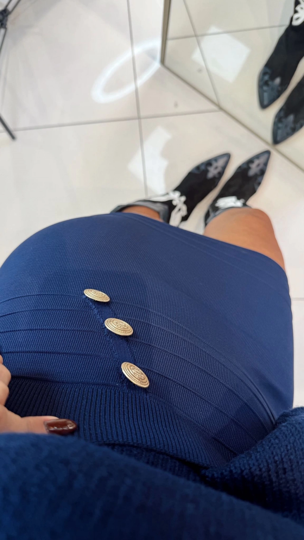 • LACİVERT DÜĞME DETAYLI BELİ LASTİKLİ TRİKO ETEK