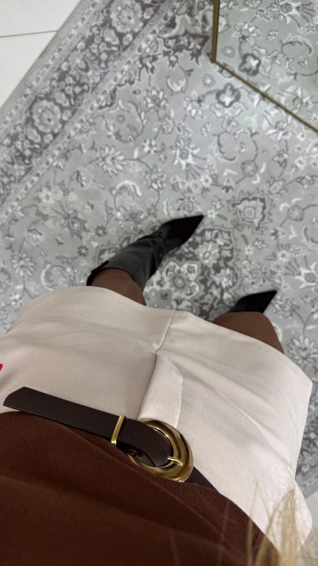 • KREM RENGİ İÇ GÖSTERMEZ ŞORT ETEKLİ CEPLİ KENDİNDEN KEMERLİ