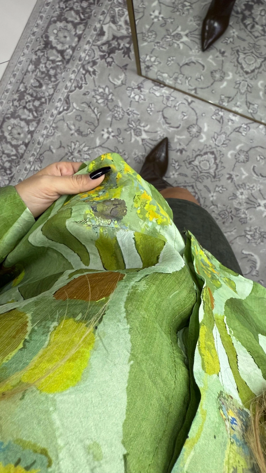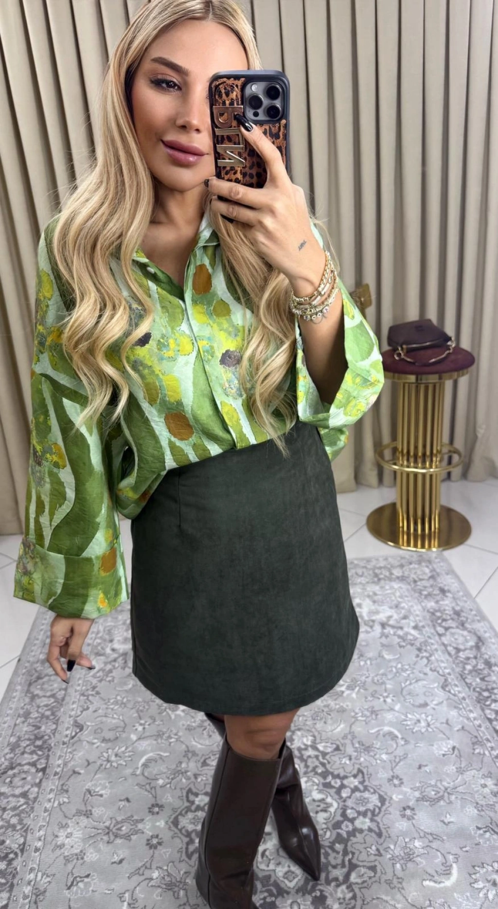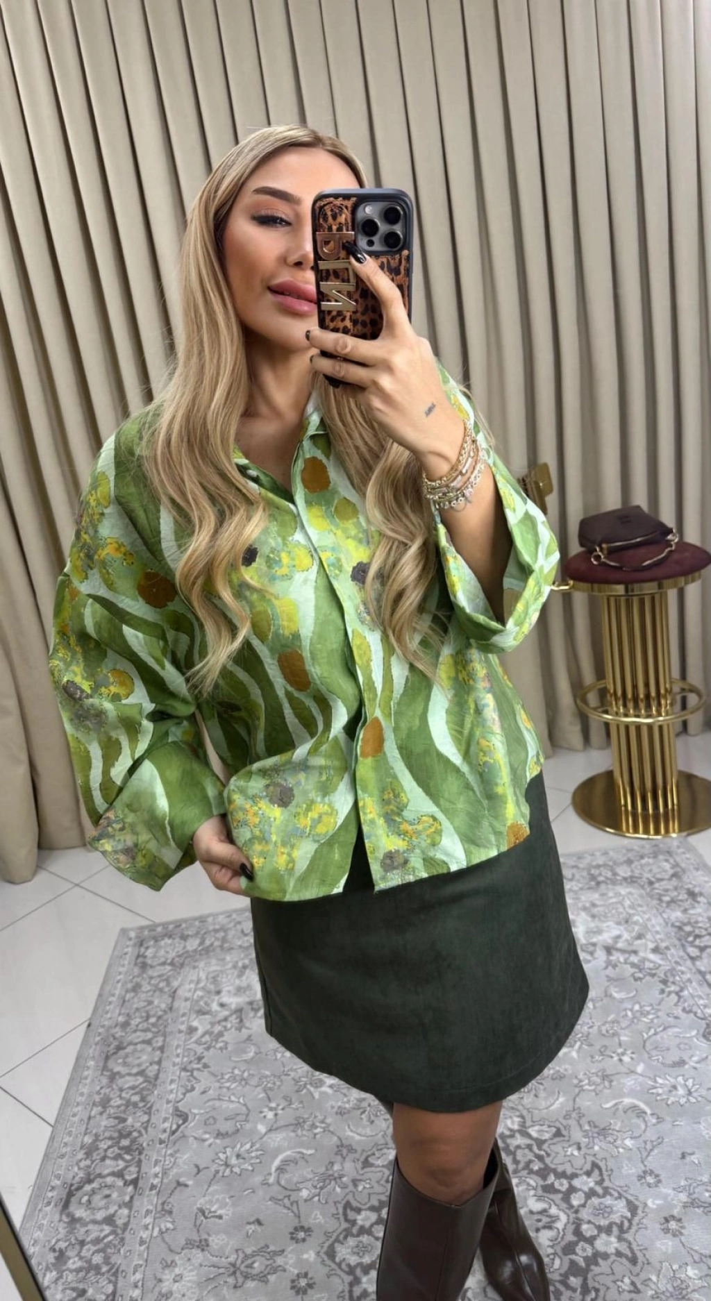 • YEŞİL DESENLİ BİLEK DETAYLARI GENİŞ GÖMLEK RAHAT KALIP