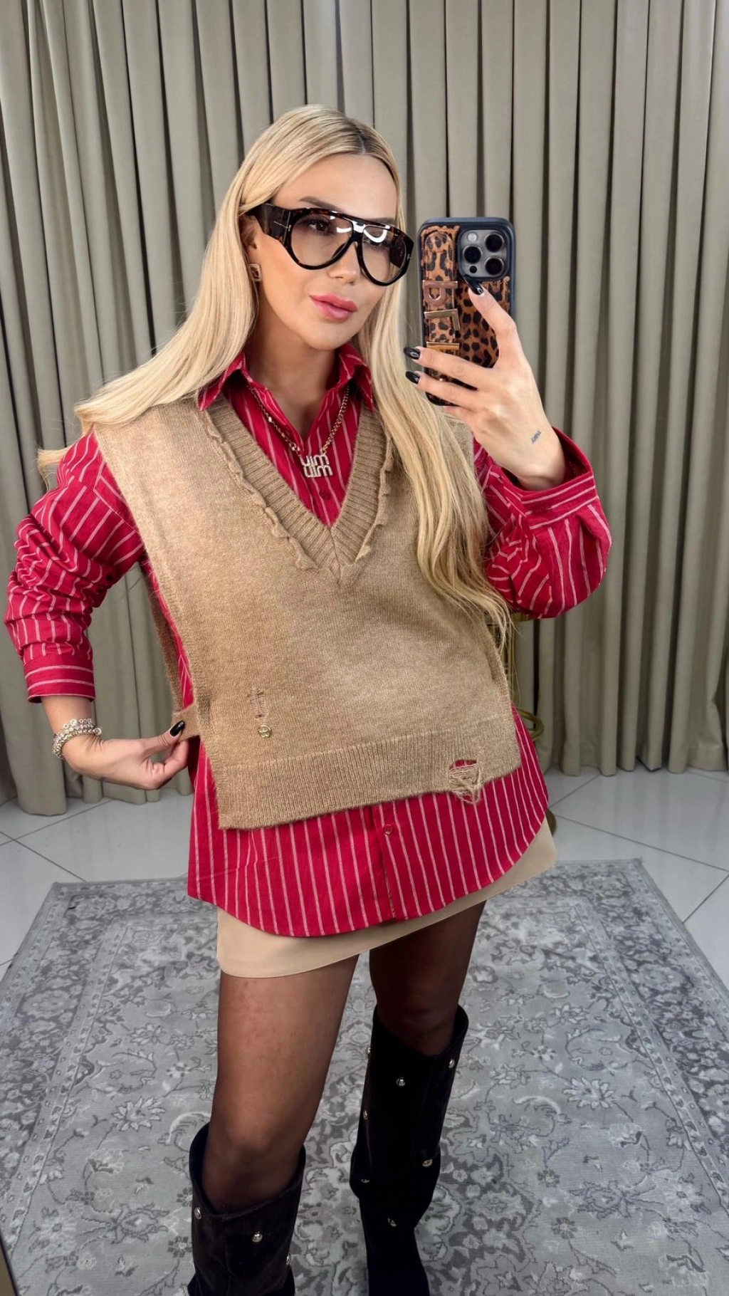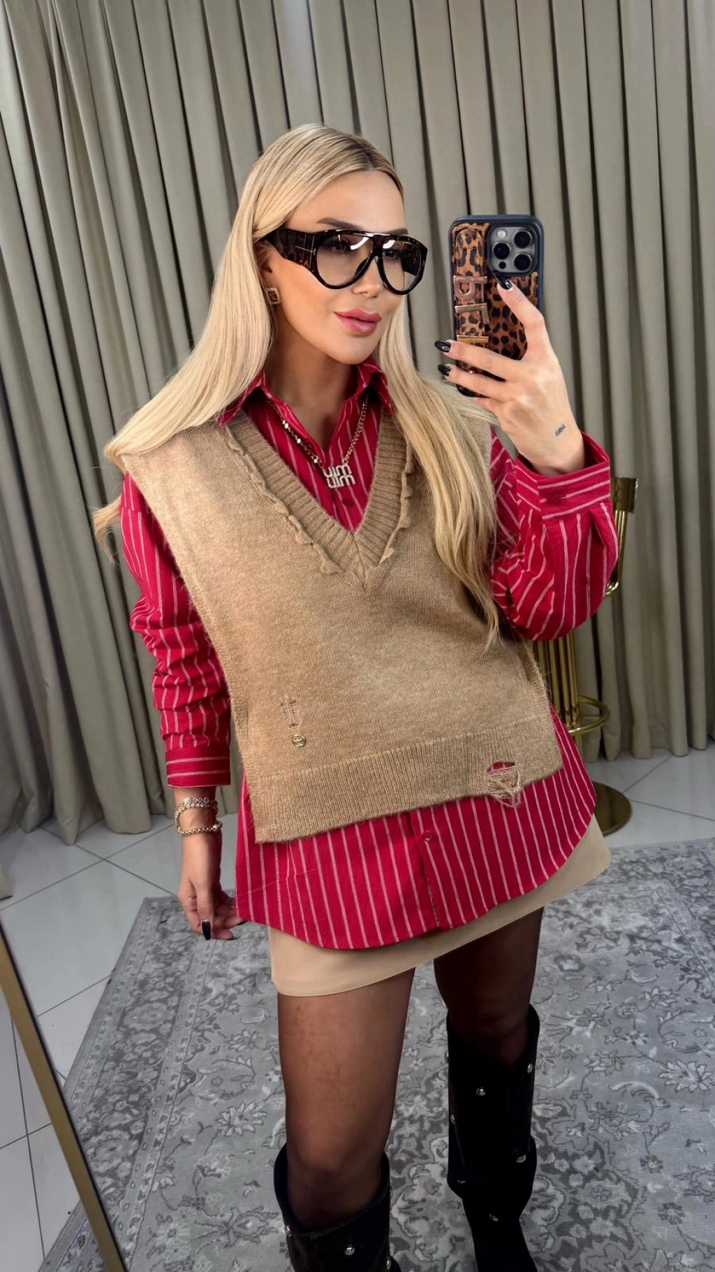 • Standart beden kırmızı çizgili gömlek ve süveter