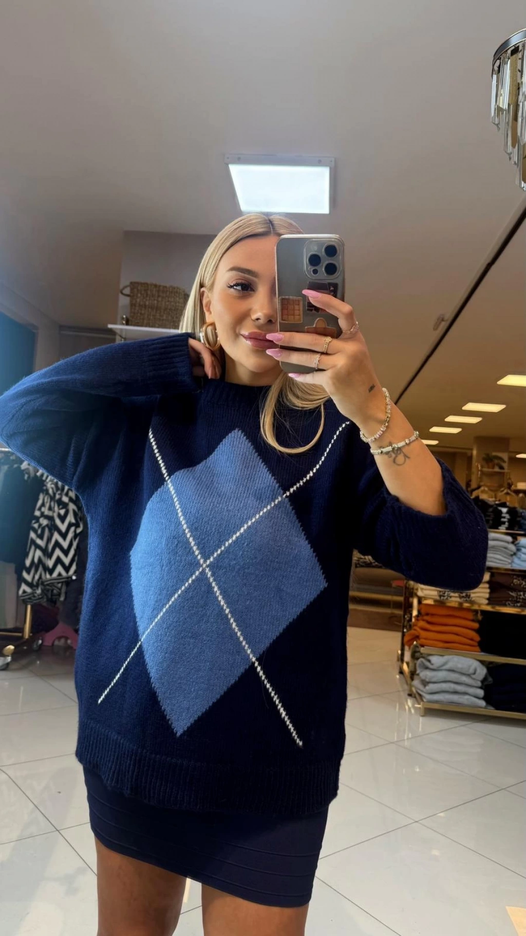 • BAKLAVA DESEN TRİKO KAZAK STANDART BEDEN