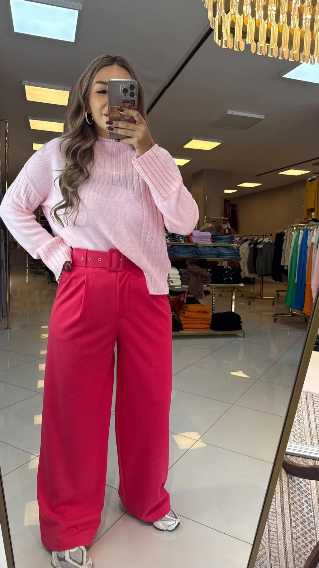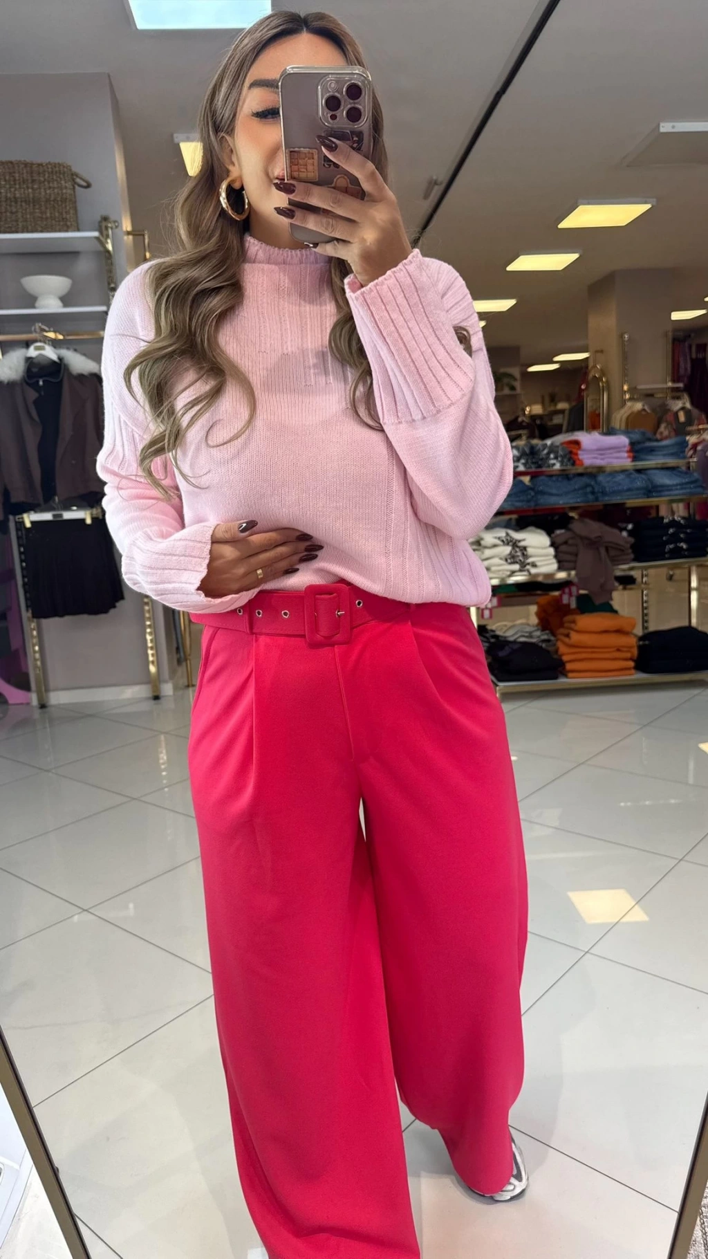 • YÜKSEL BEL KEMERLİ CEPLİ İÇ GÖSTERMEZ PALLAZZO PANTALON