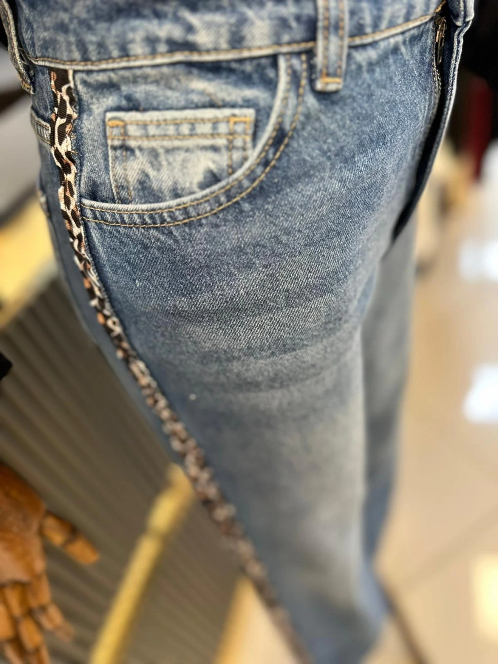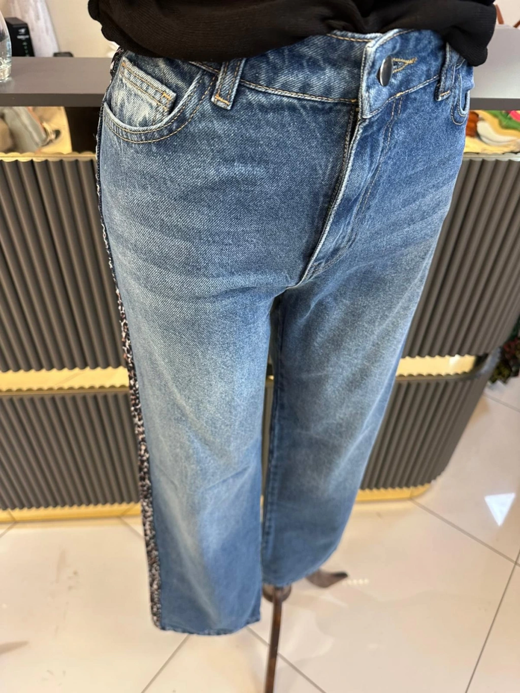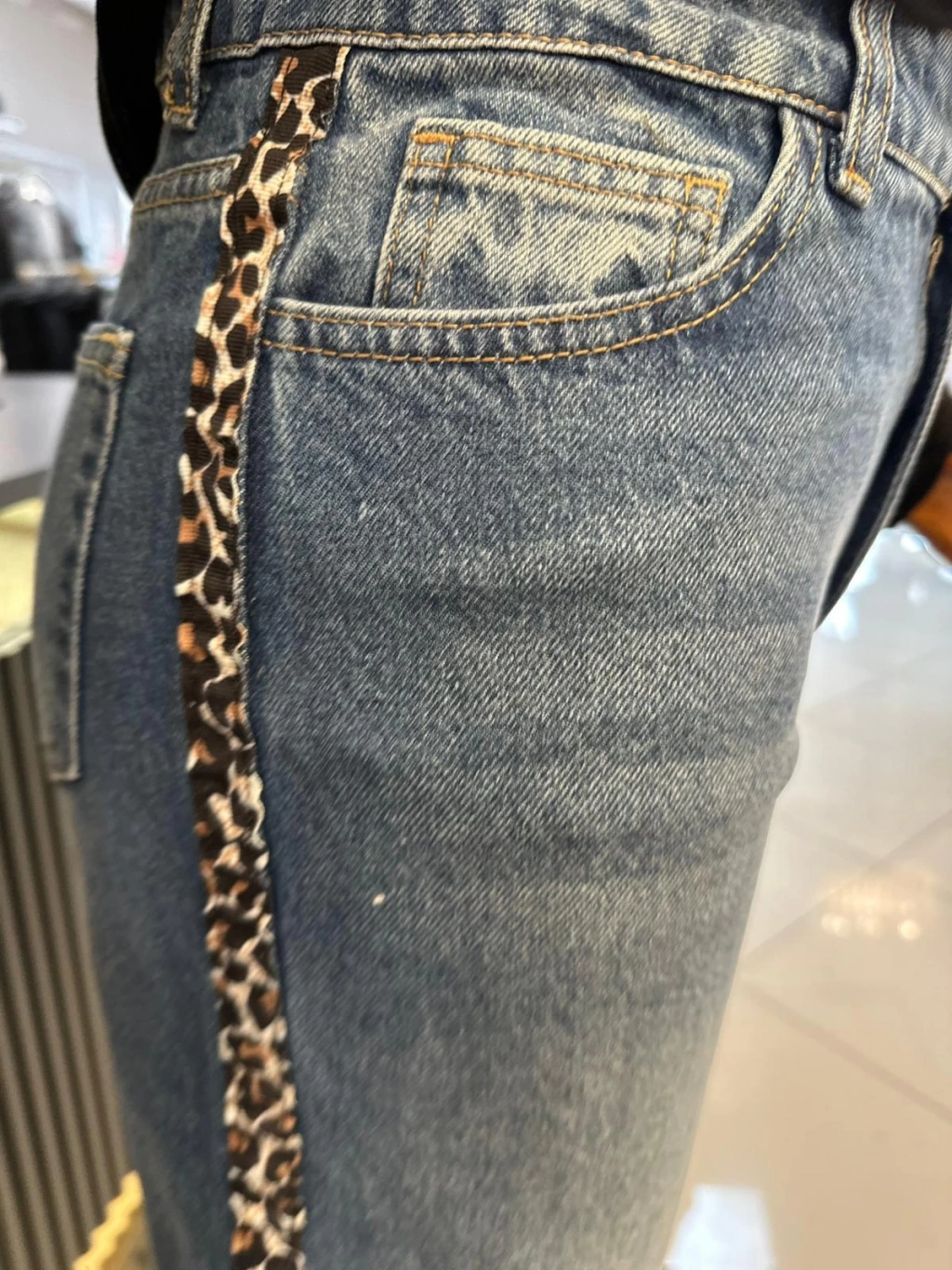 • YANLARI LEOPAR ŞERİT DETAYLI DENİM
