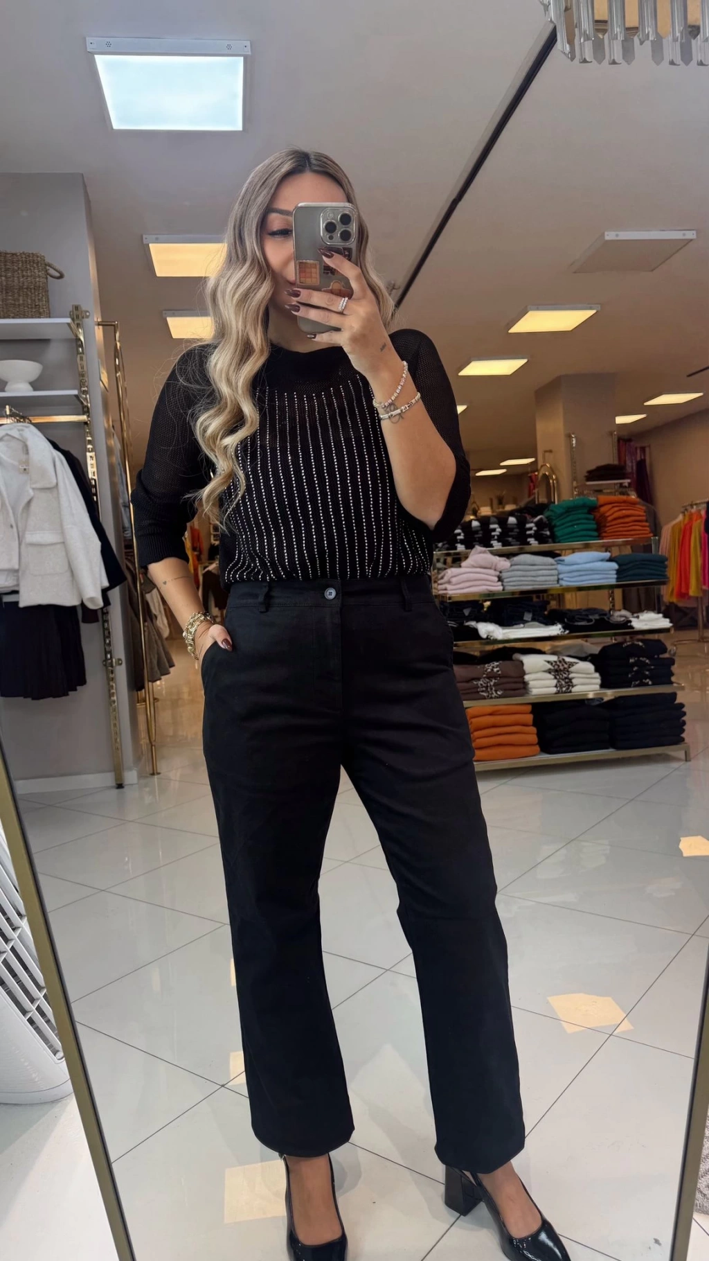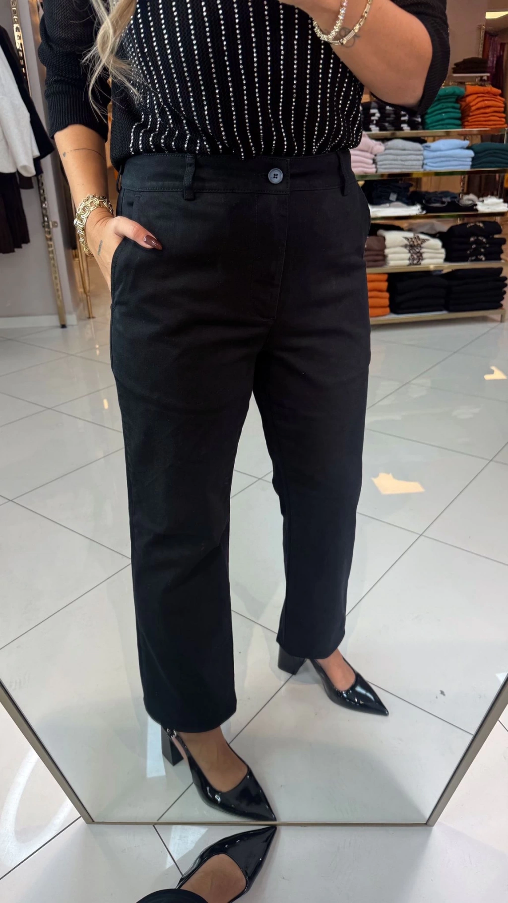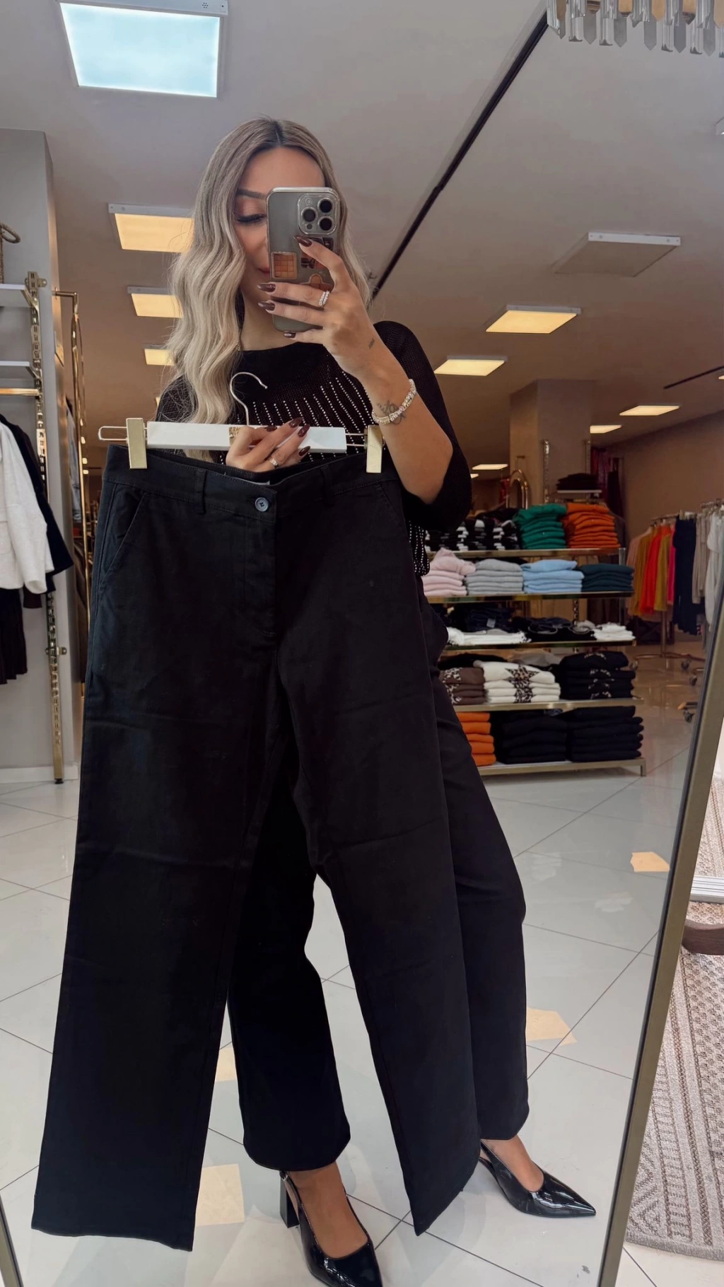 • SİYAH YÜKSEK BEL CEPLİ İÇ GÖSTERMEZ RAHAT KALIP PANTALON
