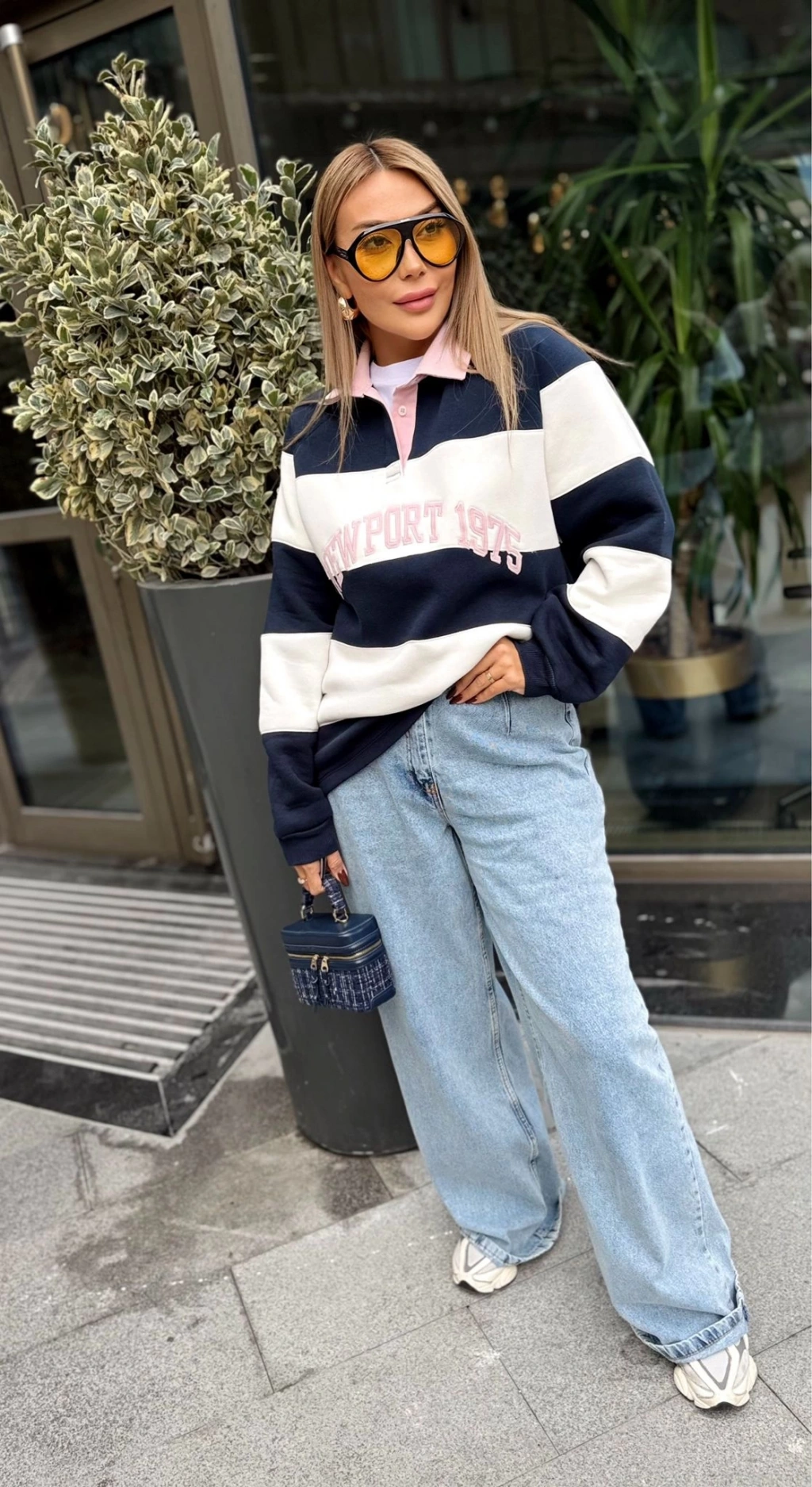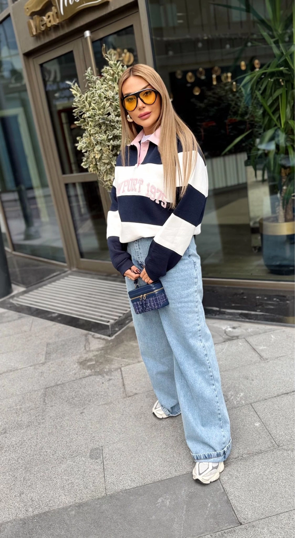 • POLO YAKA İKİ İPLİK ŞARDONLU ÇİZGİLİ SWEAT