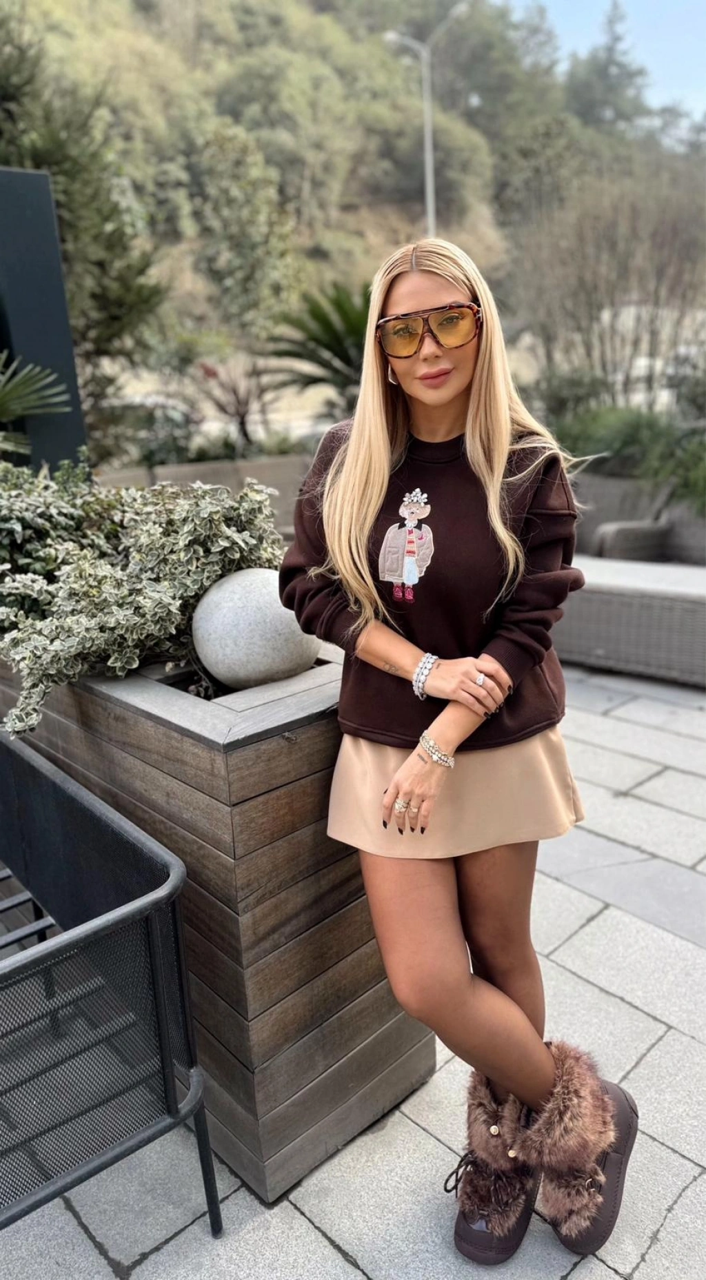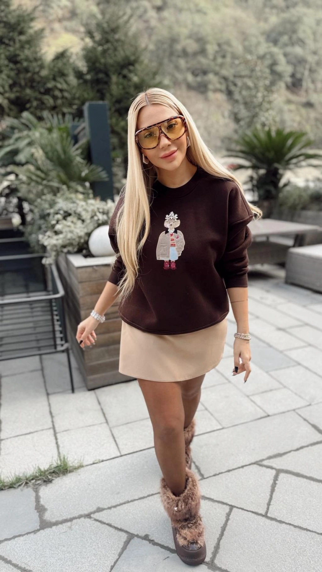 • ACI KAHVE TEDY İŞLEMELİ İKİ İPLİK ŞARDONLU SWEAT