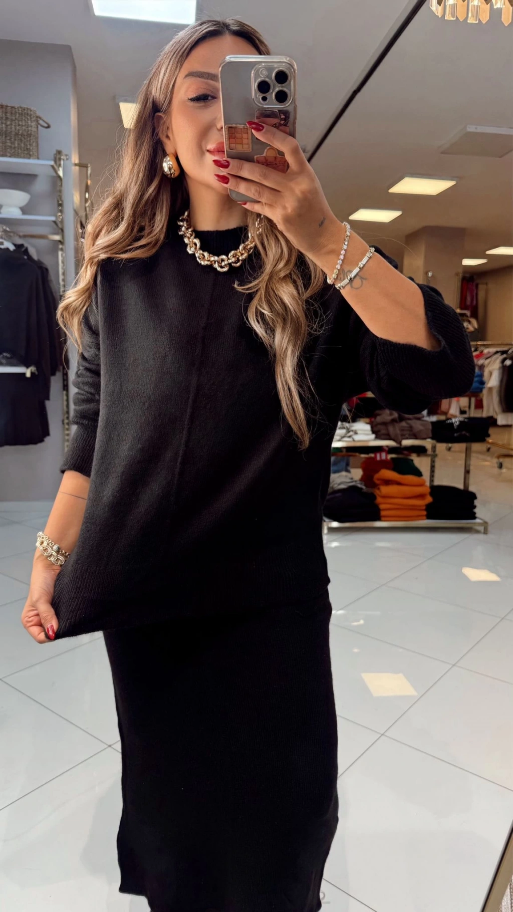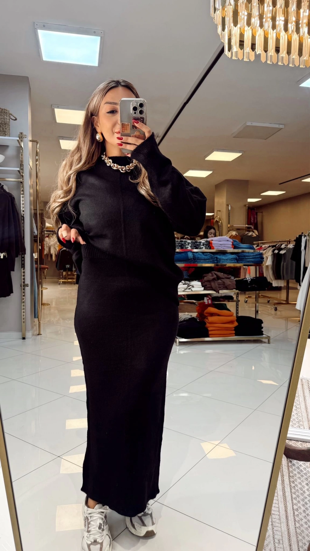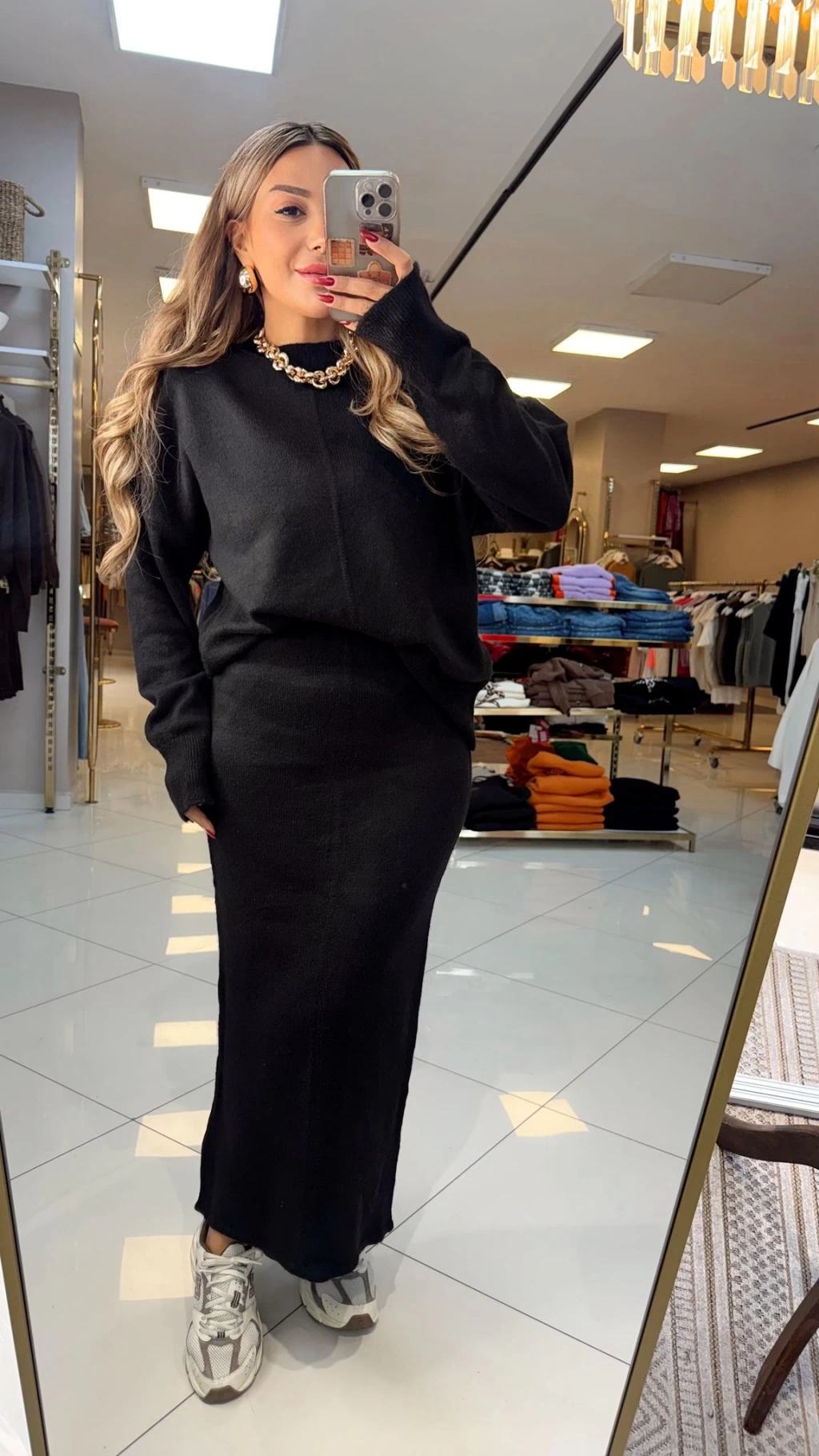 • SİYAH TRİKO TAKIM ESNEK DOKUSU VAR STANDART BEDEN