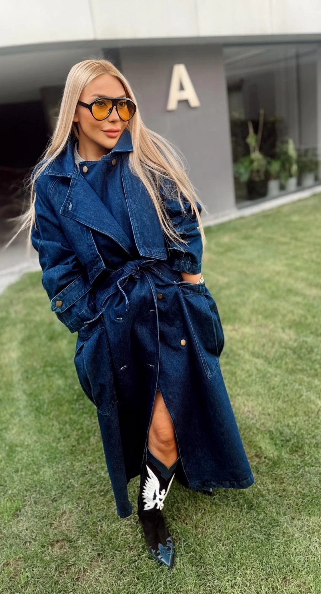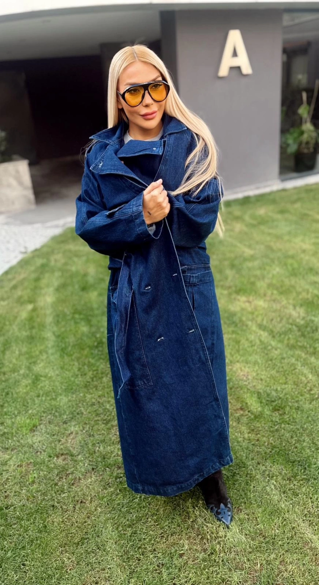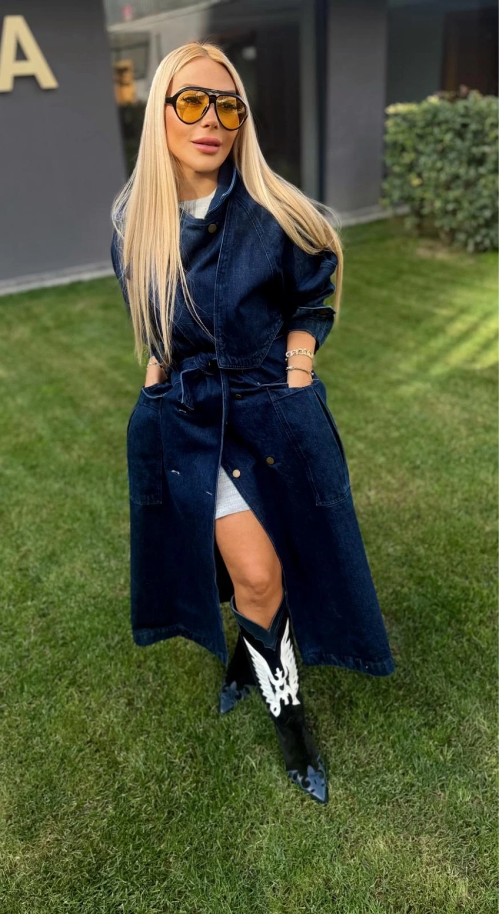 • LACİVERT DENİM TRENÇ KOT ÇOK GENİŞ KALIPTIR BÜYÜK CEPLİ KENDİNDEN KEMERLİ ZR MODEL