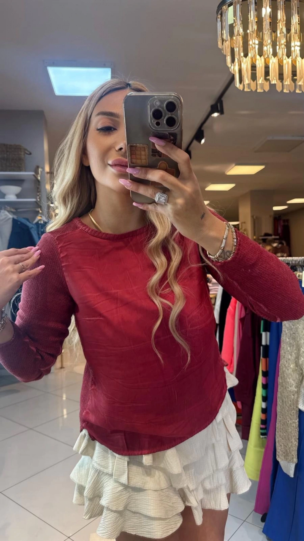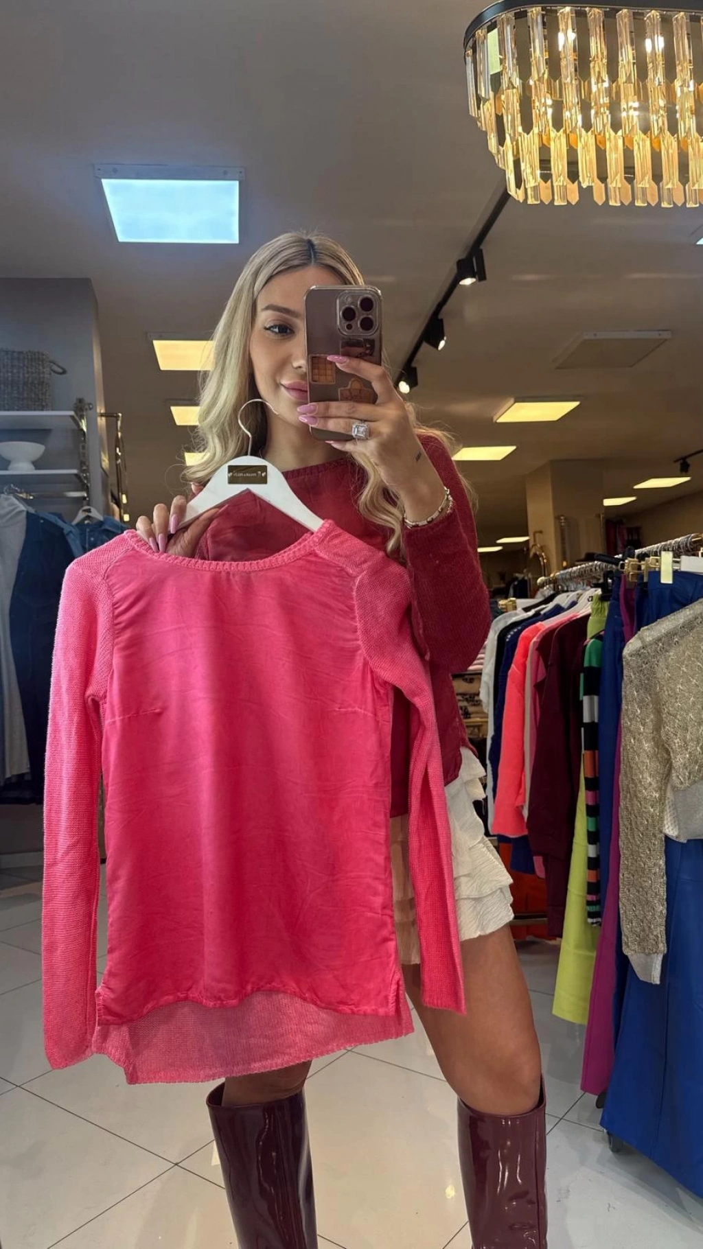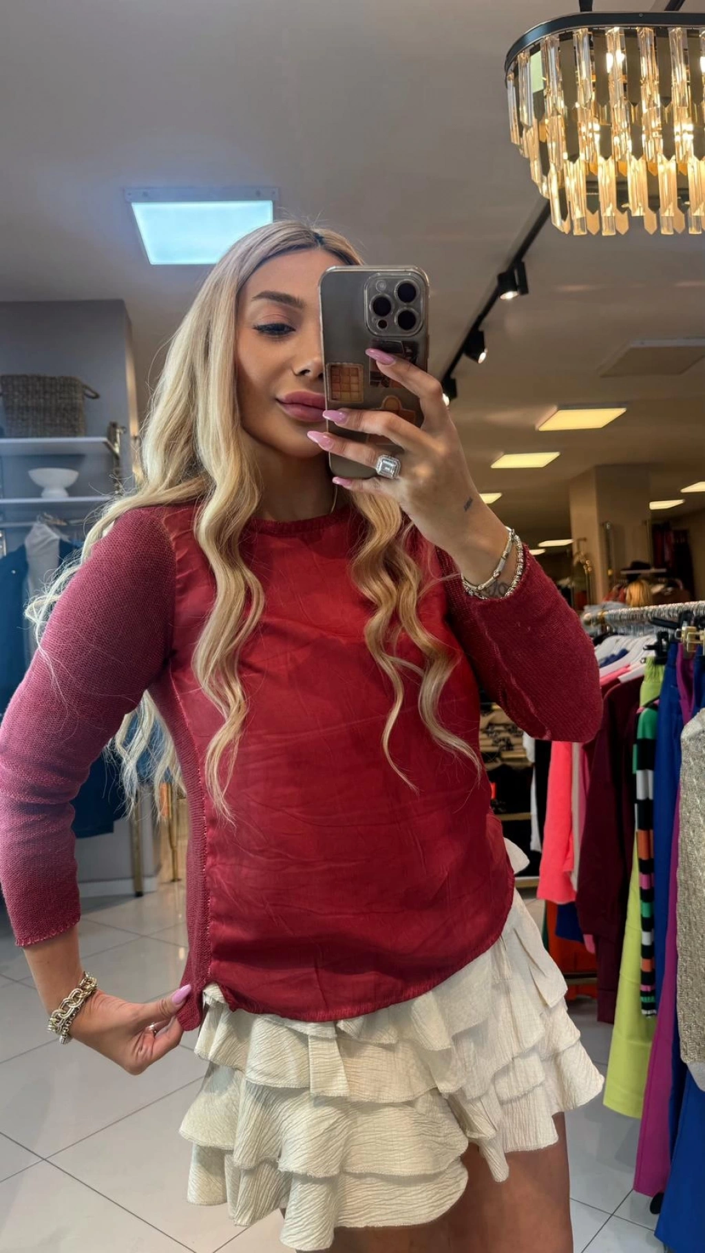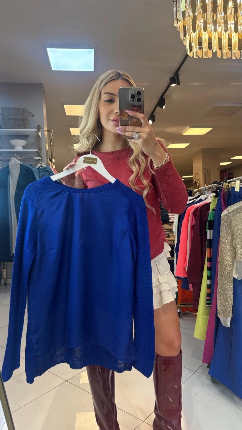 • ARKASI TRİKO ÖN KISMI SATENİMSİ KUMAŞ DOKUSU KALIP TAM KALIPTIR RENKLER ARASINDA KUMAŞ DOKUSU BEDEN ARALIĞI FARKLILIĞI VARDIR YANİ BORDO VE MAVİ TRİKO L BEDENLERİ AYNI KALIP DEĞİLDİR MAVİ DAHA GENİŞTİR