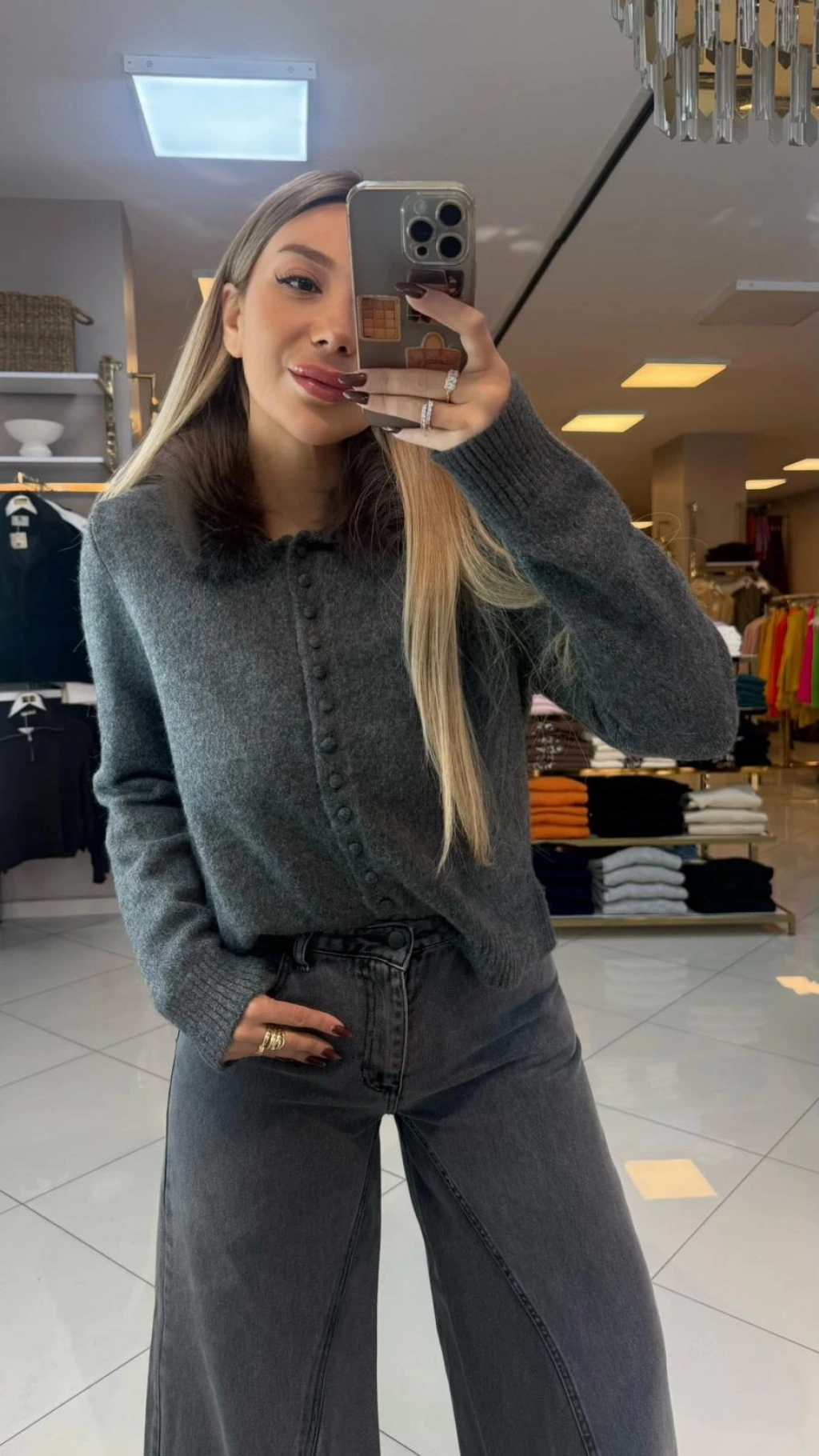 • PELUŞ YAKA ÖNDEN DÜĞMELİ TRİKO