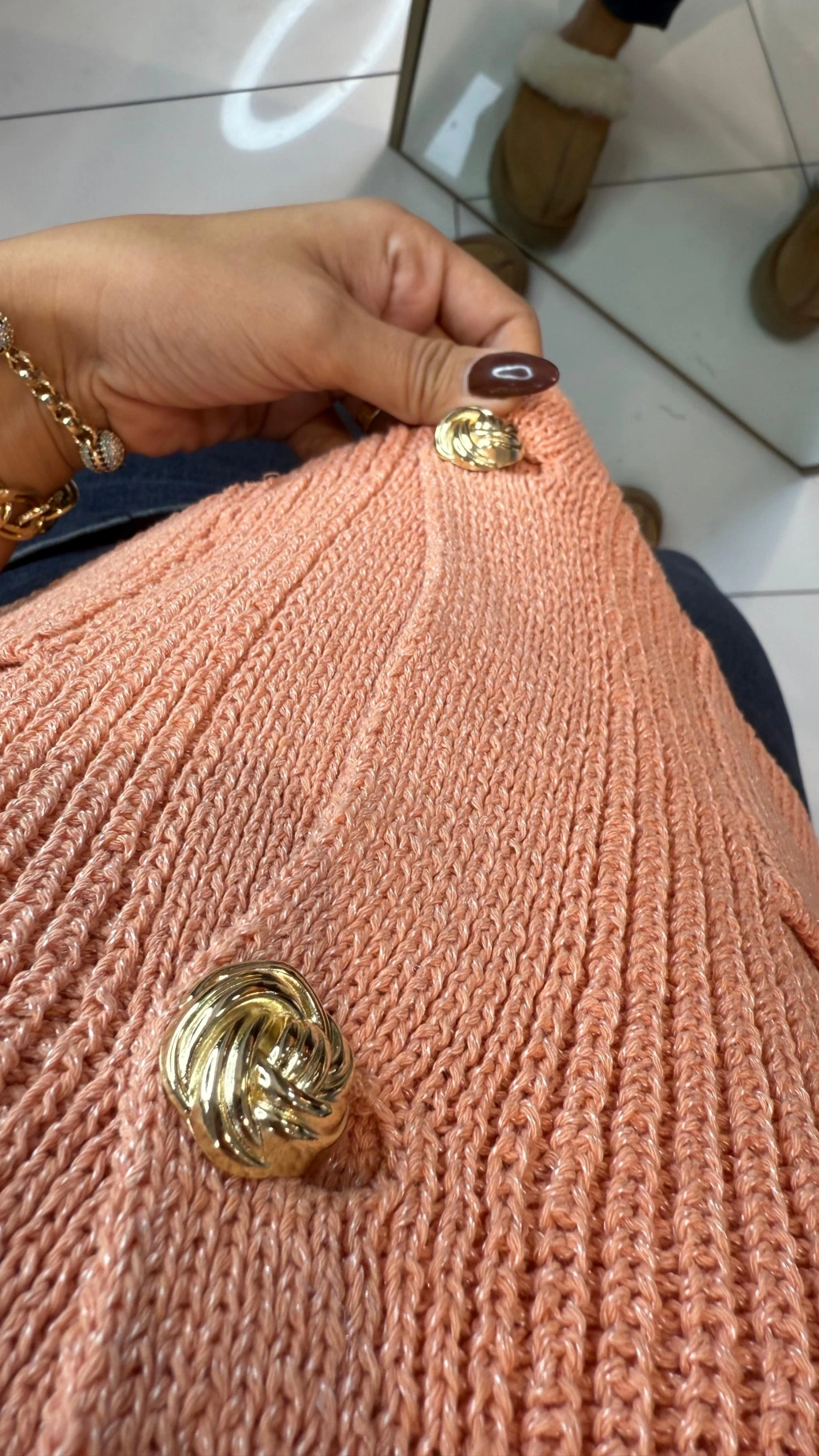 • GOLD DÜĞME DETAYLI YAVRU AĞIZ RENGİ STANDART BEDEN ESNEK TRİKO